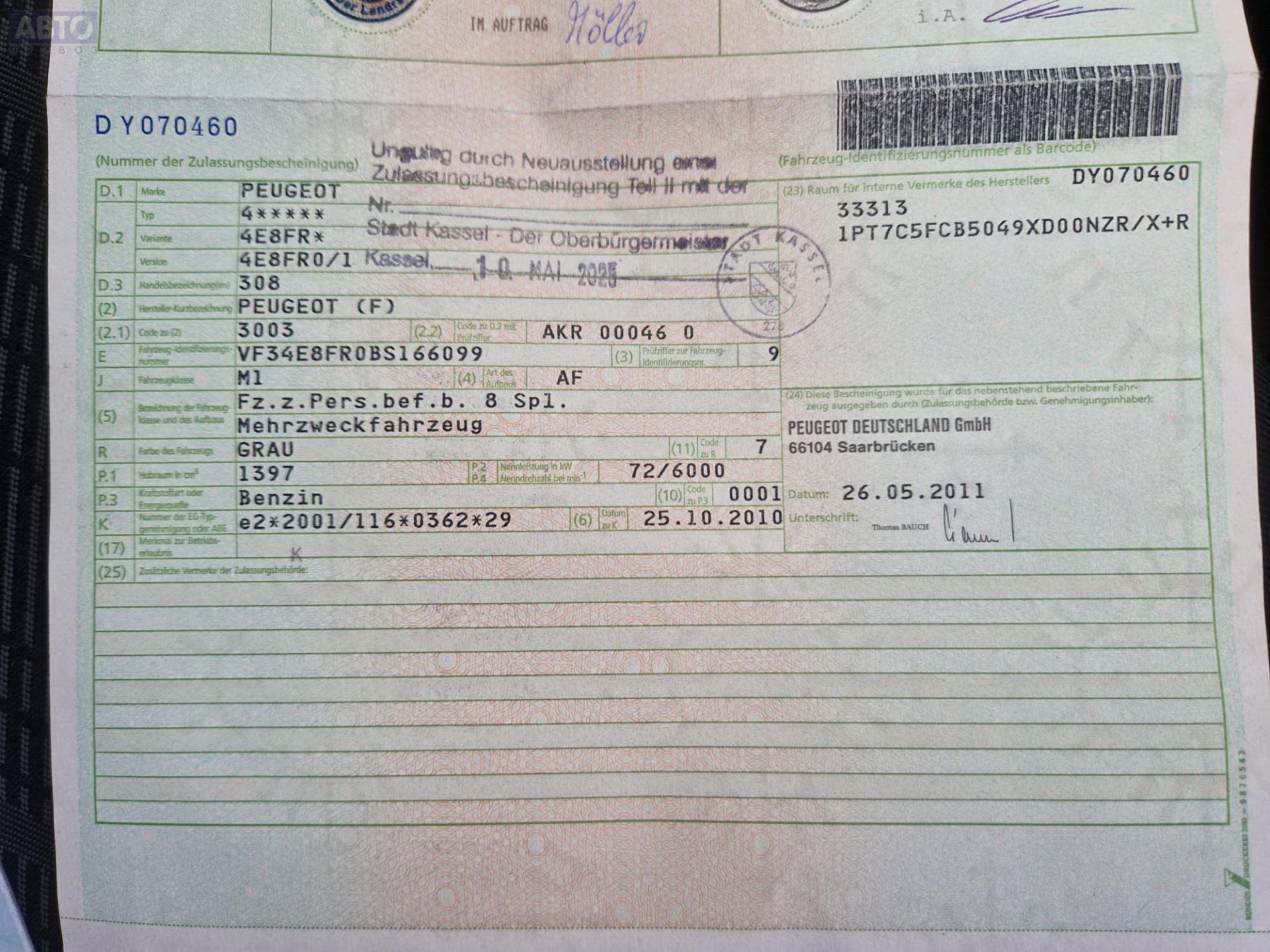 | Марка / Модель / Год: | Peugeot 308 T7 (2007-2013) 2011 |