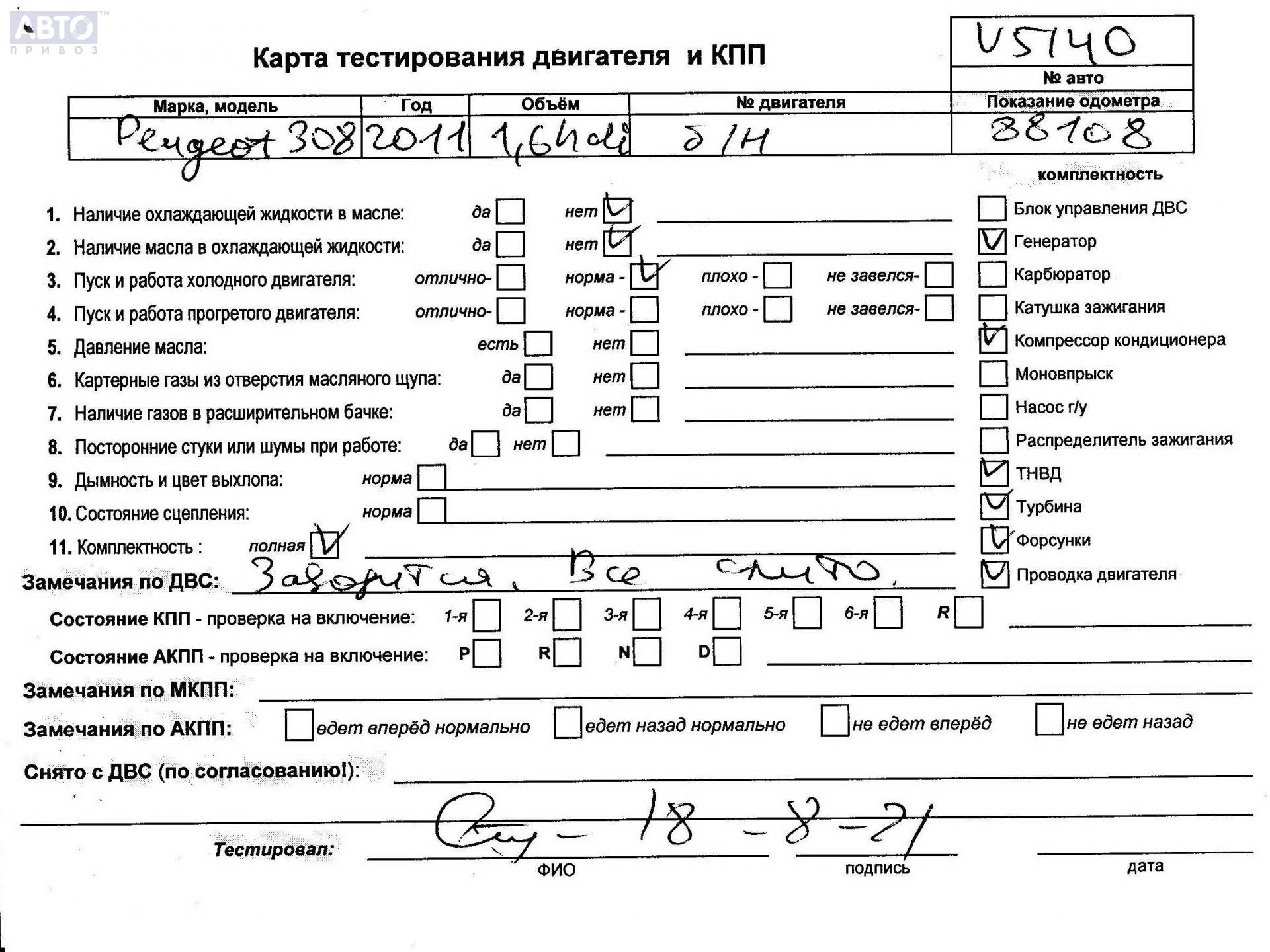 | Автомобиль / VIN: | V5140 VF34C9HR8BY032061 |