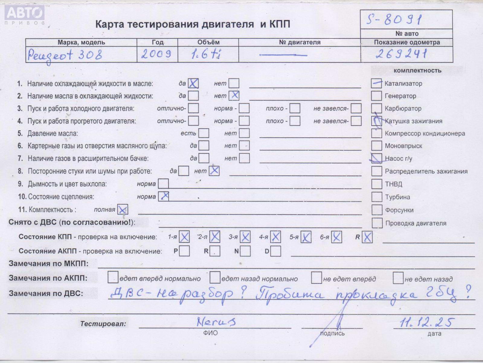 | Марка / Модель / Год: | Peugeot 308 T7 (2007-2013) 2009 |