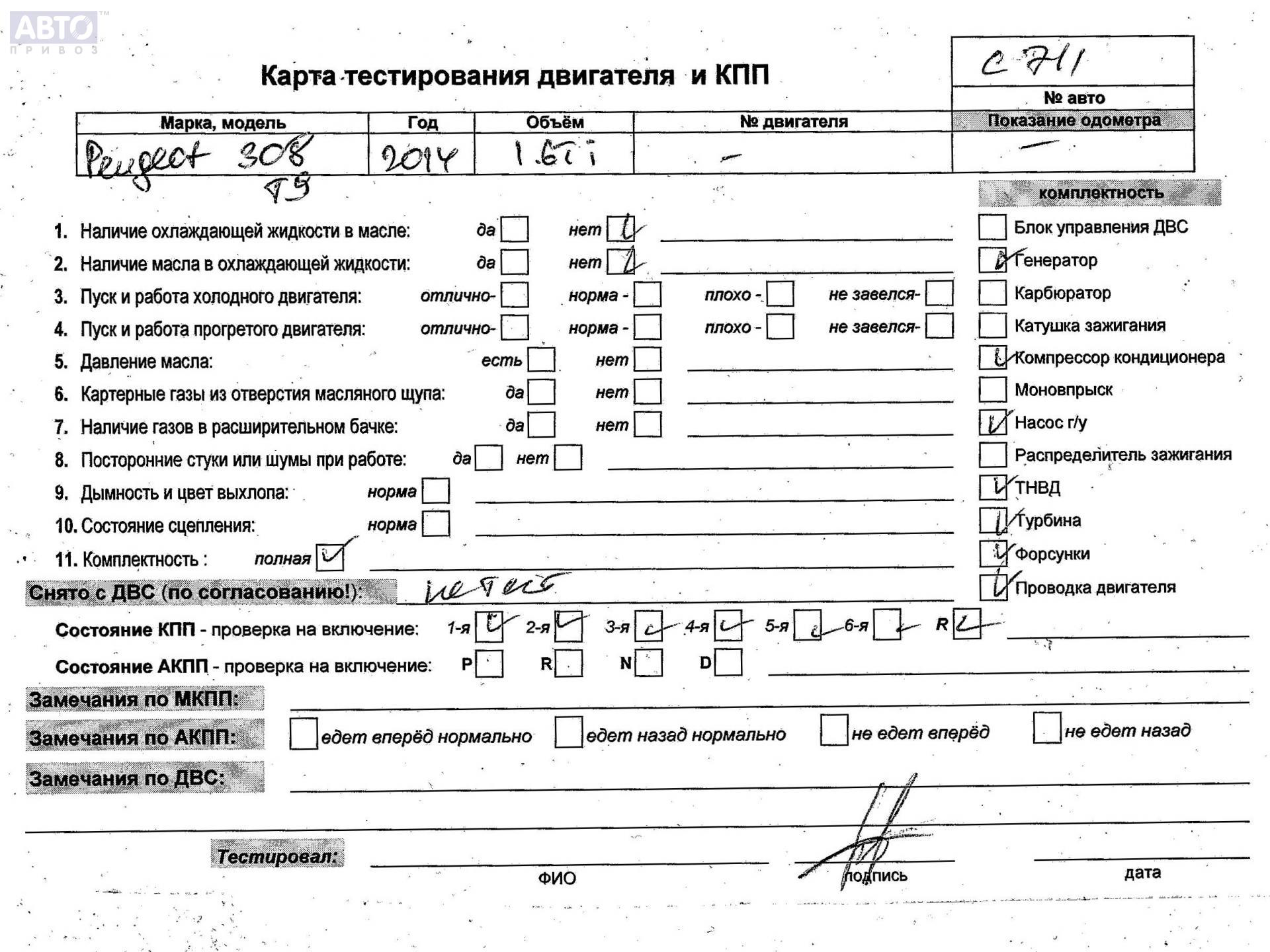 | Марка / Модель / Год: | Peugeot 308 T9 (2013-2021) 2014 |