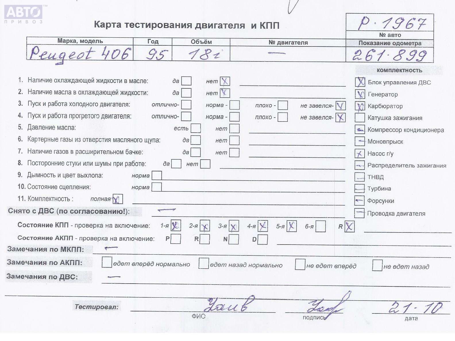 | Марка / Модель / Год: | Peugeot 406 1995 |