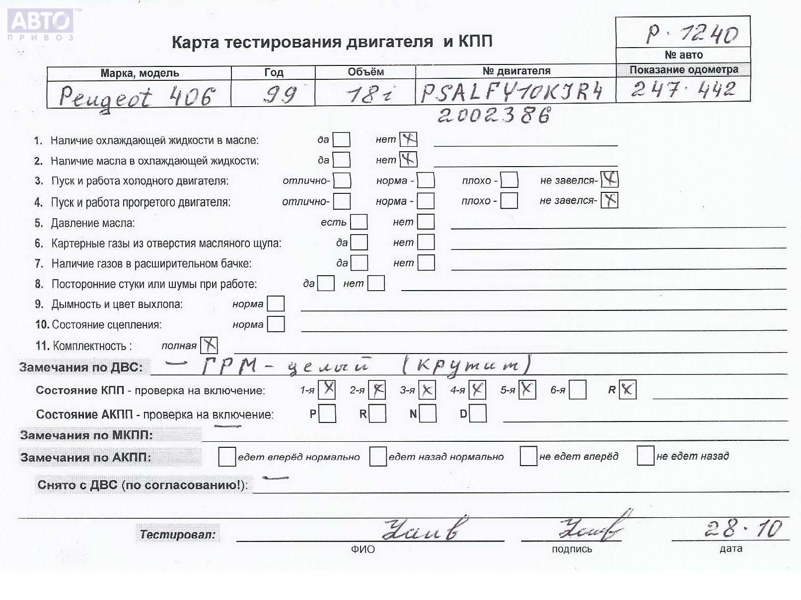 | Марка / Модель / Год: | Peugeot 406 1999 |