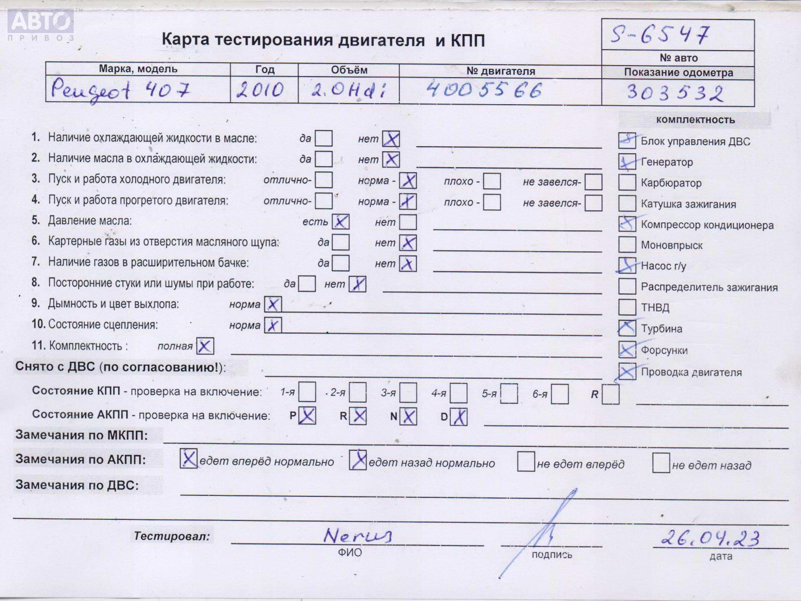 | Марка / Модель / Год: | Peugeot 407 2010 |