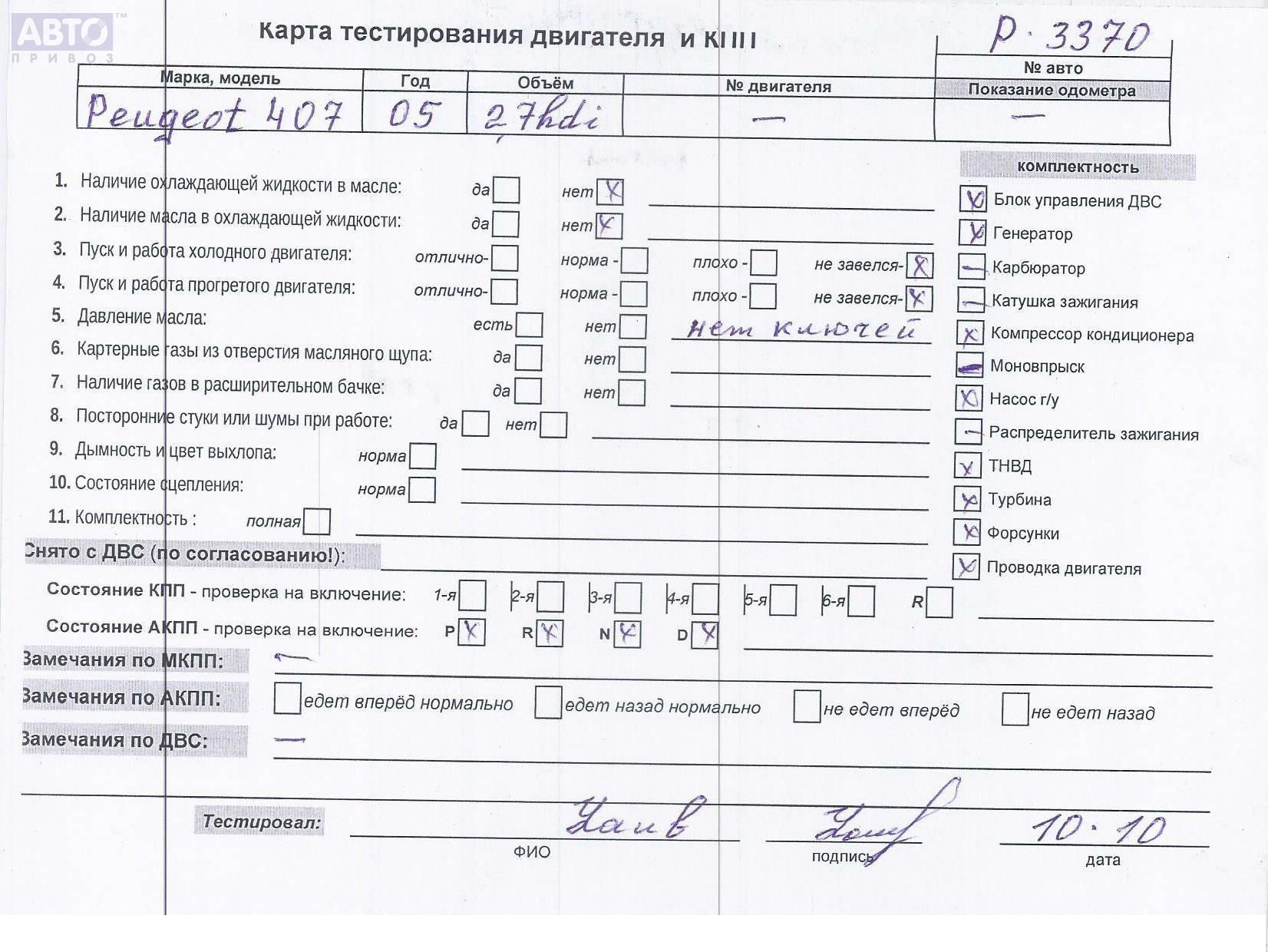 | Марка / Модель / Год: | Peugeot 407 2006 |