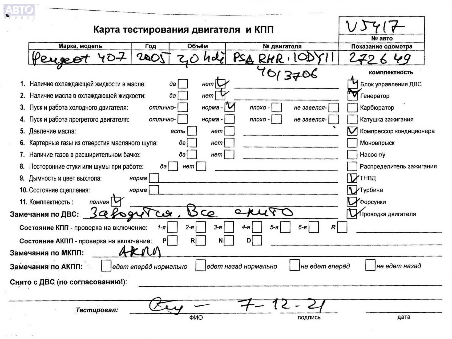 | Автомобиль / VIN: | V5417 VF36ERHRE21337759 |