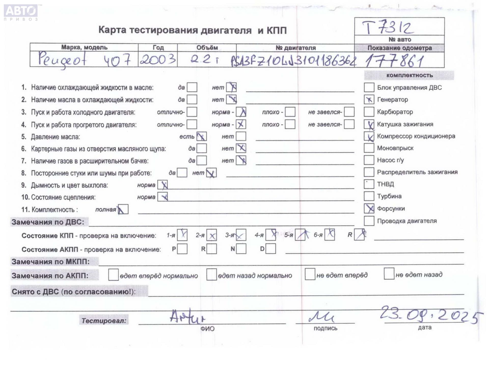 | Марка / Модель / Год: | Peugeot 407 2004 |