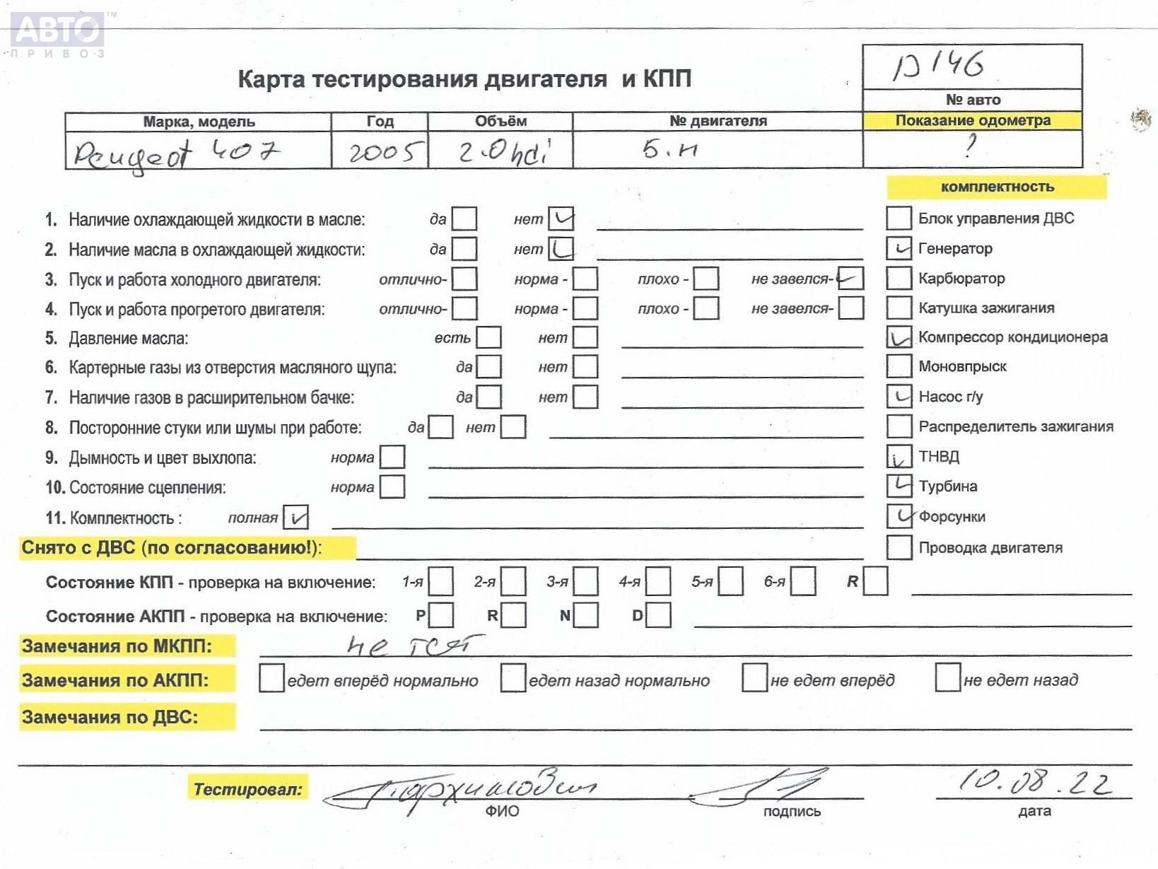 | Марка / Модель / Год: | Peugeot 407 2005 |