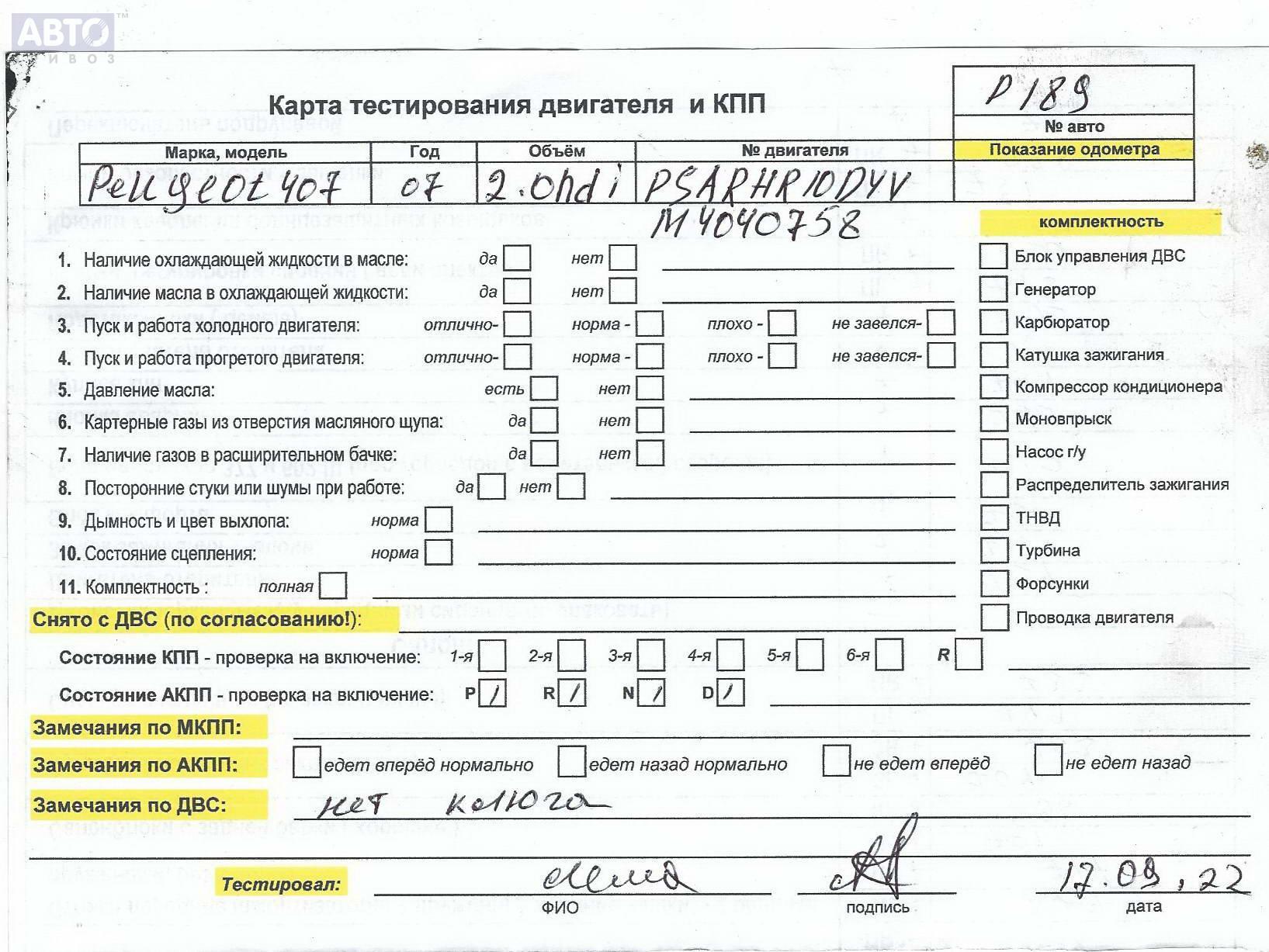 | Марка / Модель / Год: | Peugeot 407 2007 |