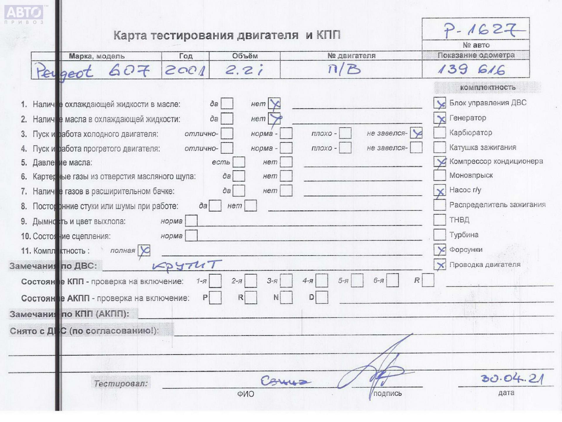 | Марка / Модель / Год: | Peugeot 607 2001 |
