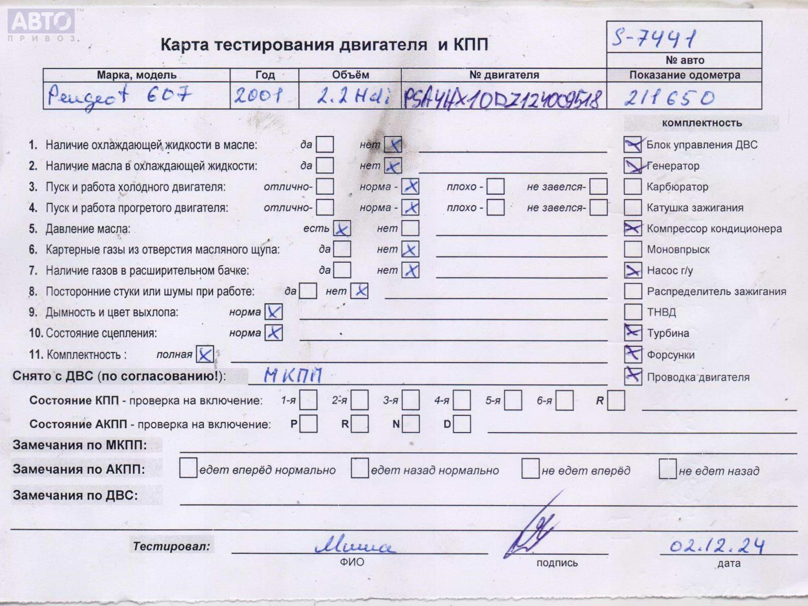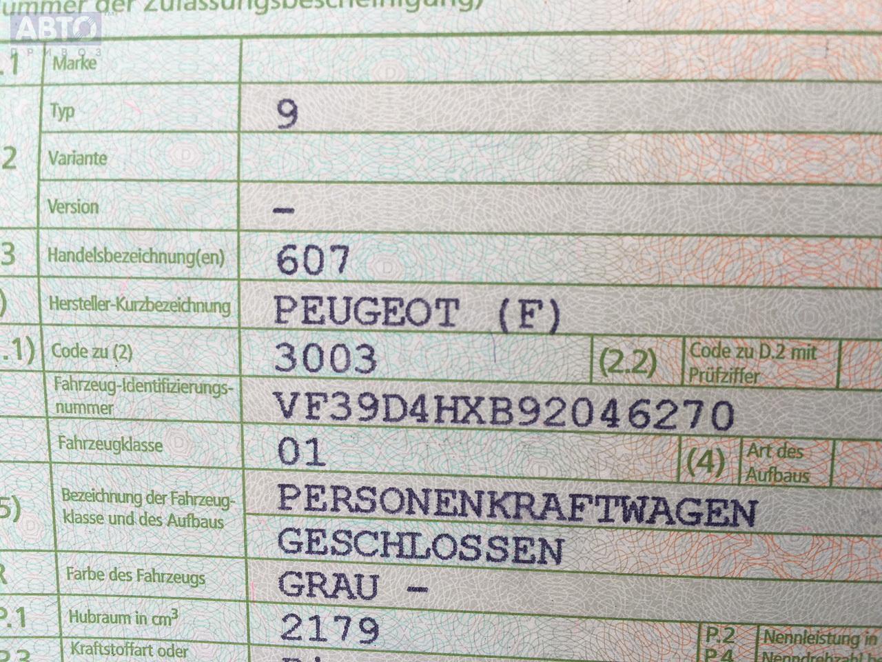| Марка / Модель / Год: | Peugeot 607 2001 |
