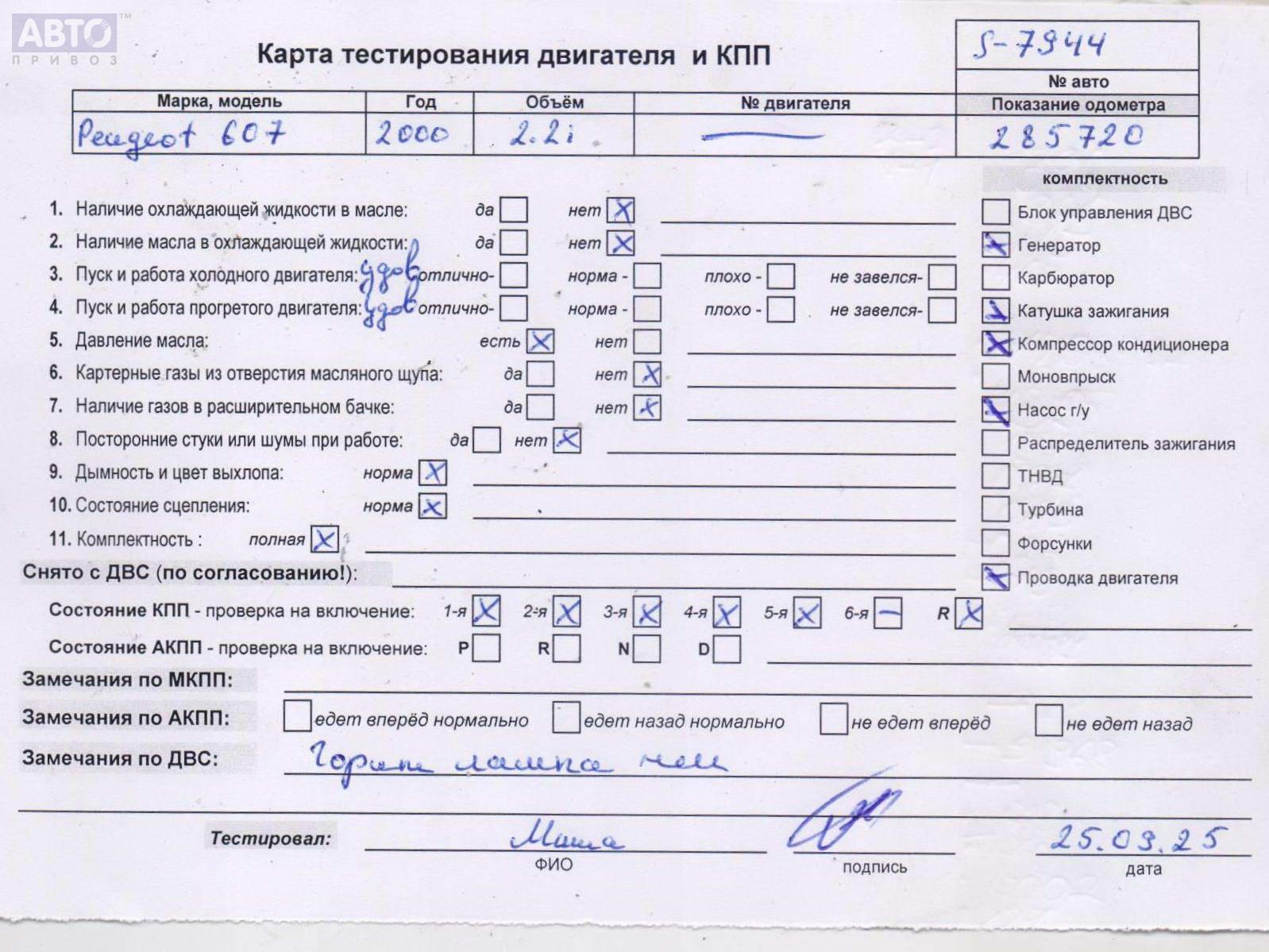 | Марка / Модель / Год: | Peugeot 607 2000 |