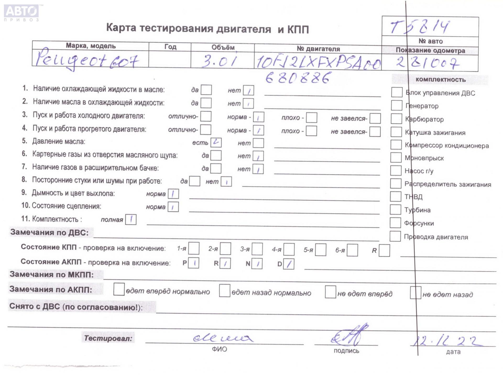 | Марка / Модель / Год: | Peugeot 607 2002 |