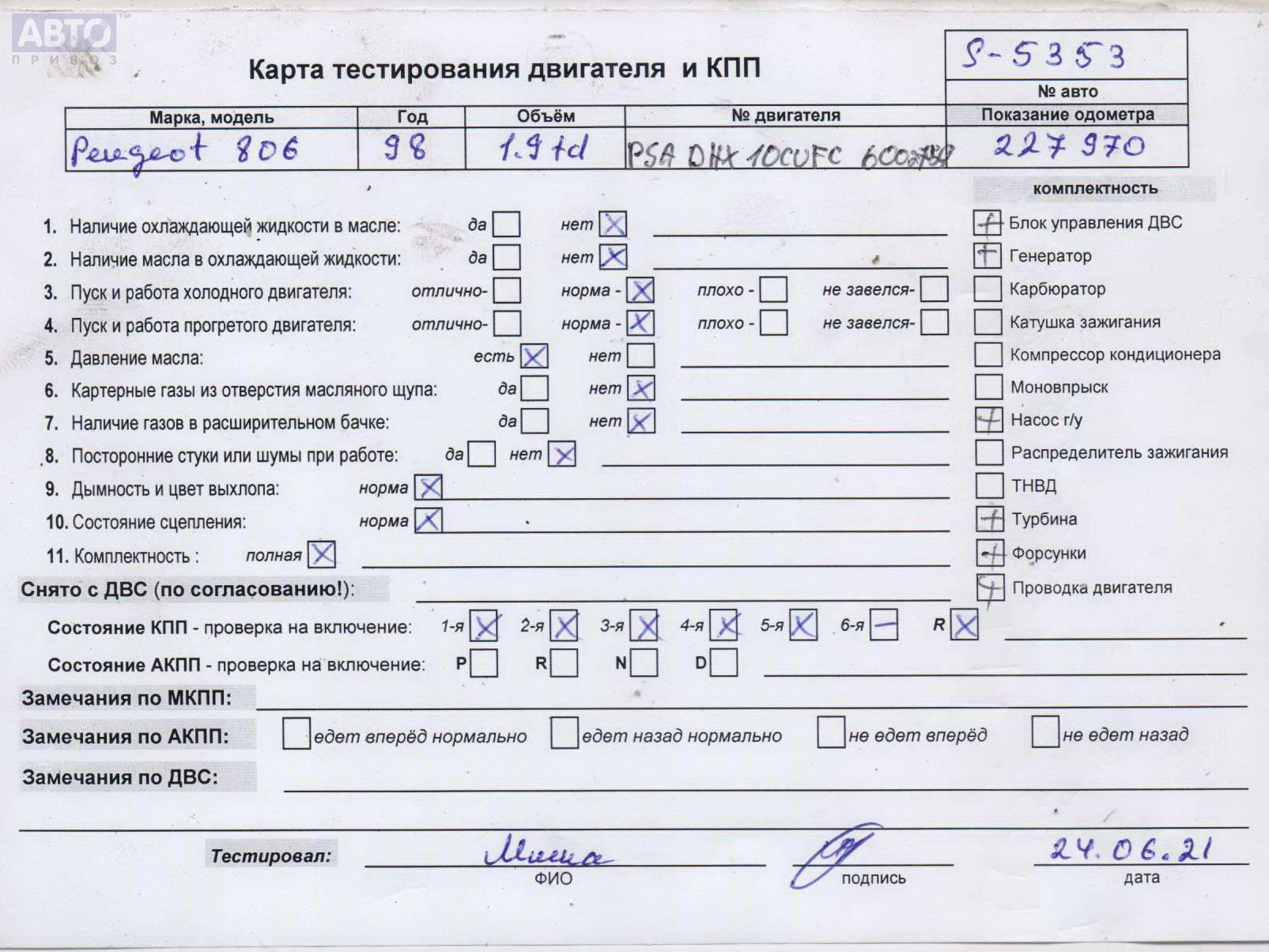 | Автомобиль / VIN: | S5353 VF3221DH212362785 |