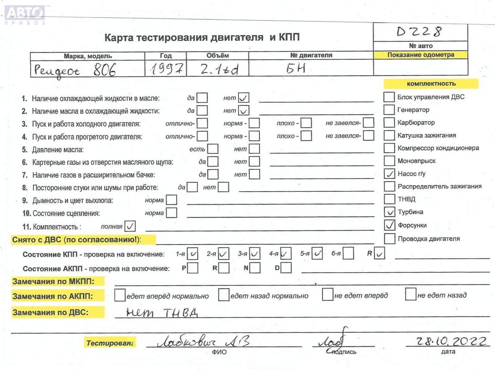 | Автомобиль / VIN: | D0228 VF3221PA212482558 |