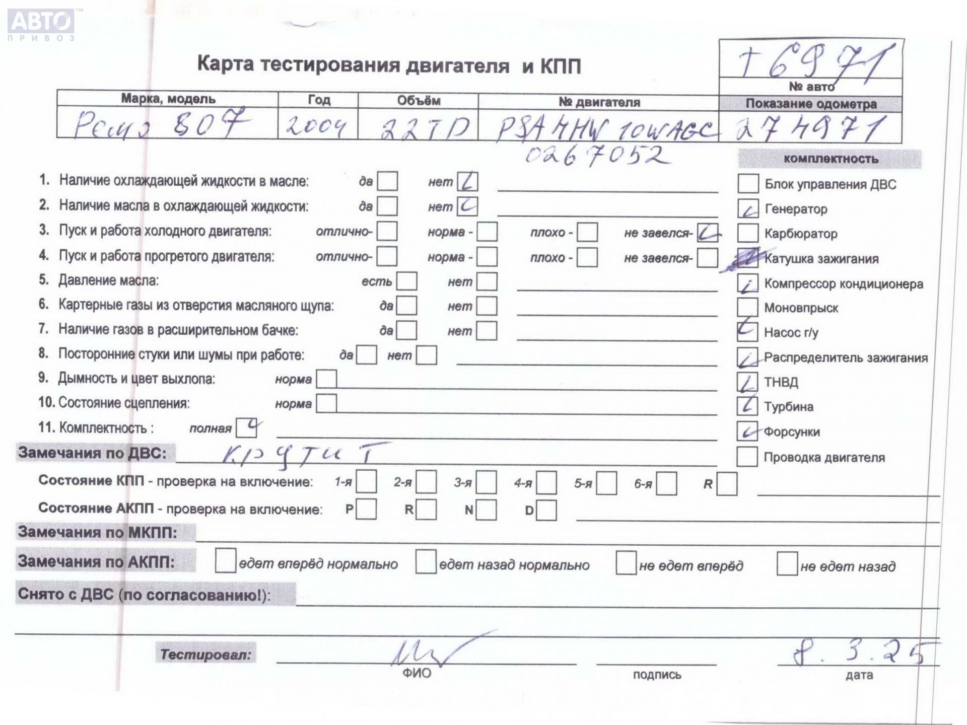 | Марка / Модель / Год: | Peugeot 807 2004 |