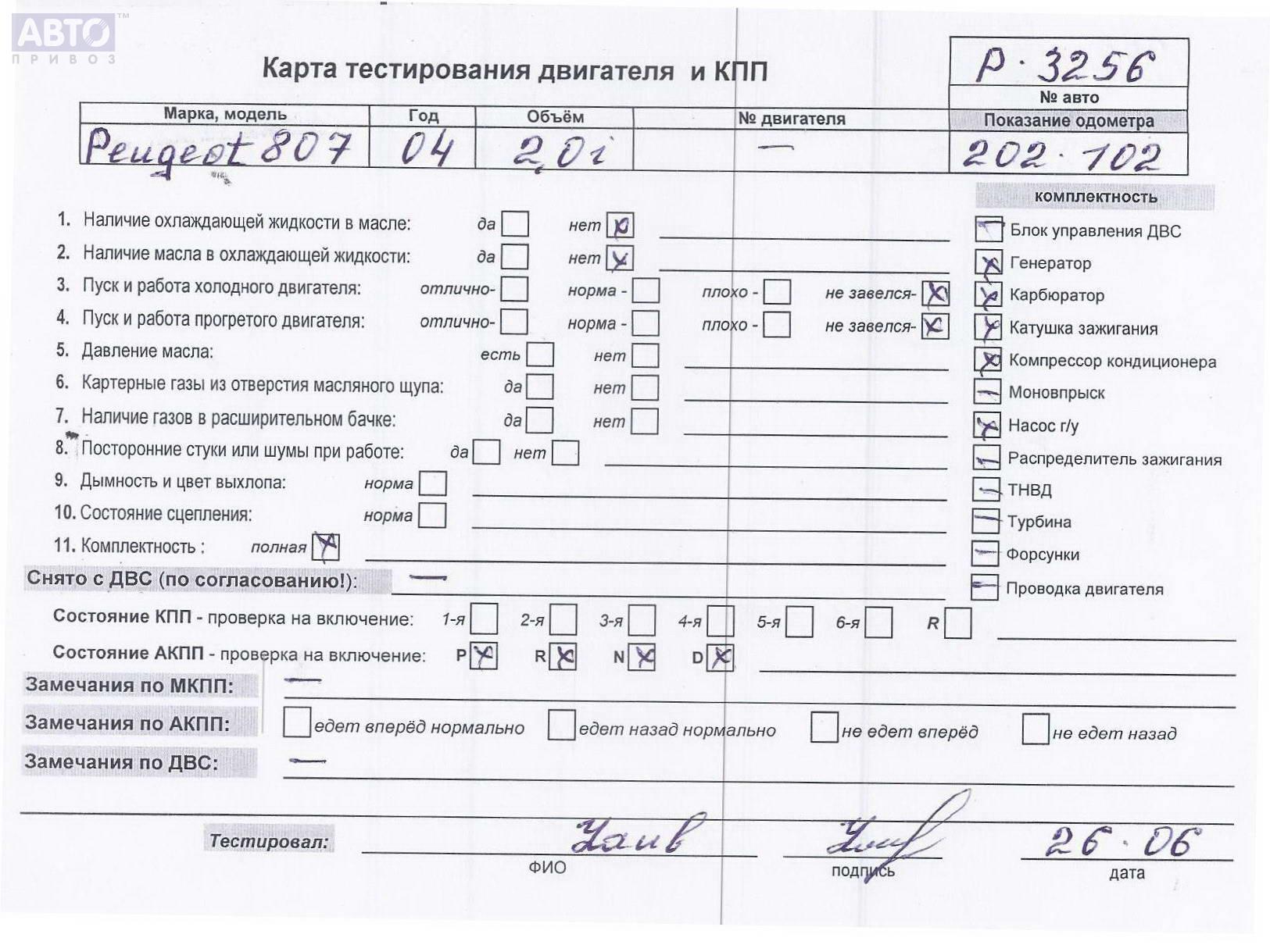 | Марка / Модель / Год: | Peugeot 807 2004 |