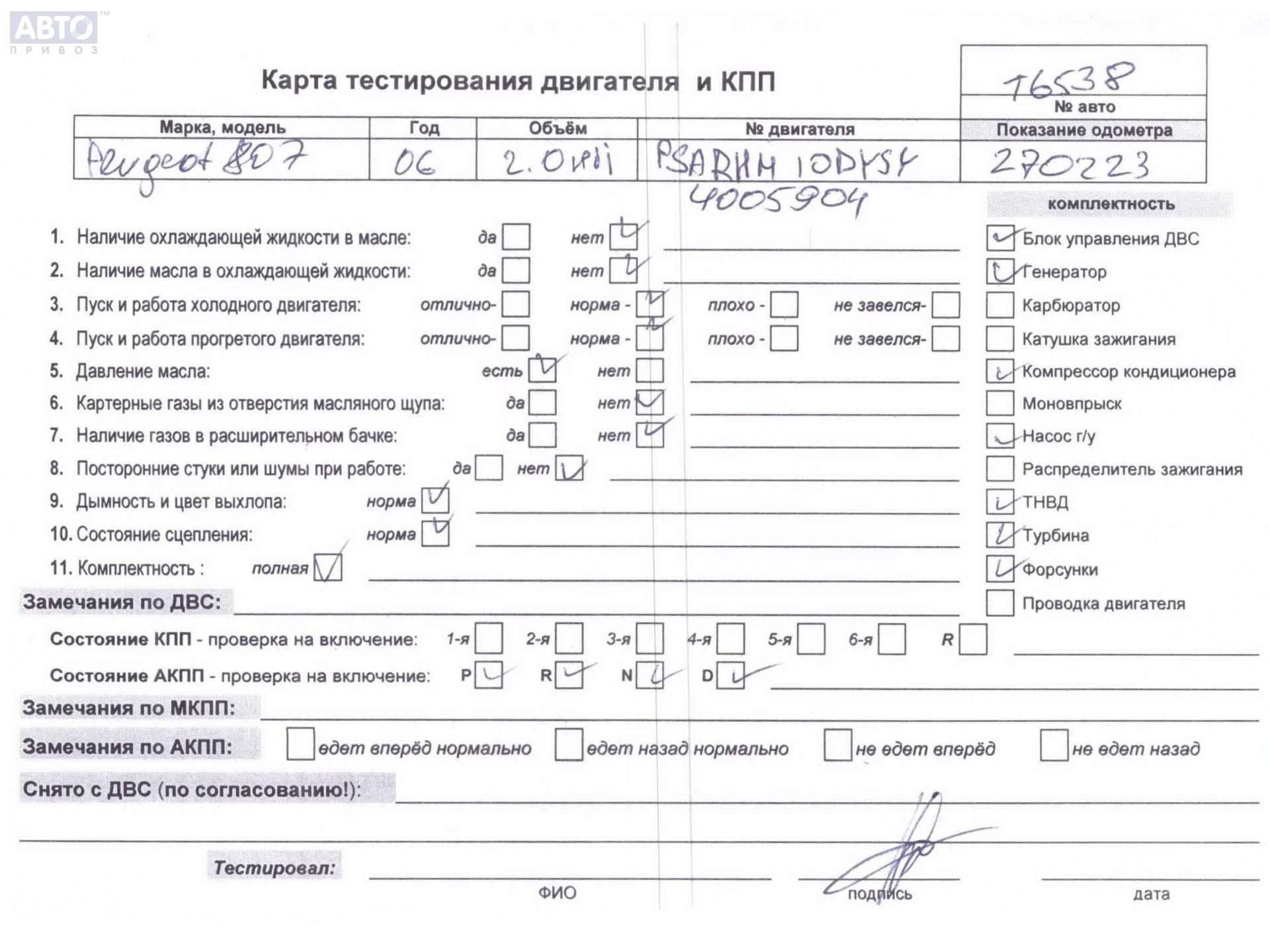 | Марка / Модель / Год: | Peugeot 807 2006 |
