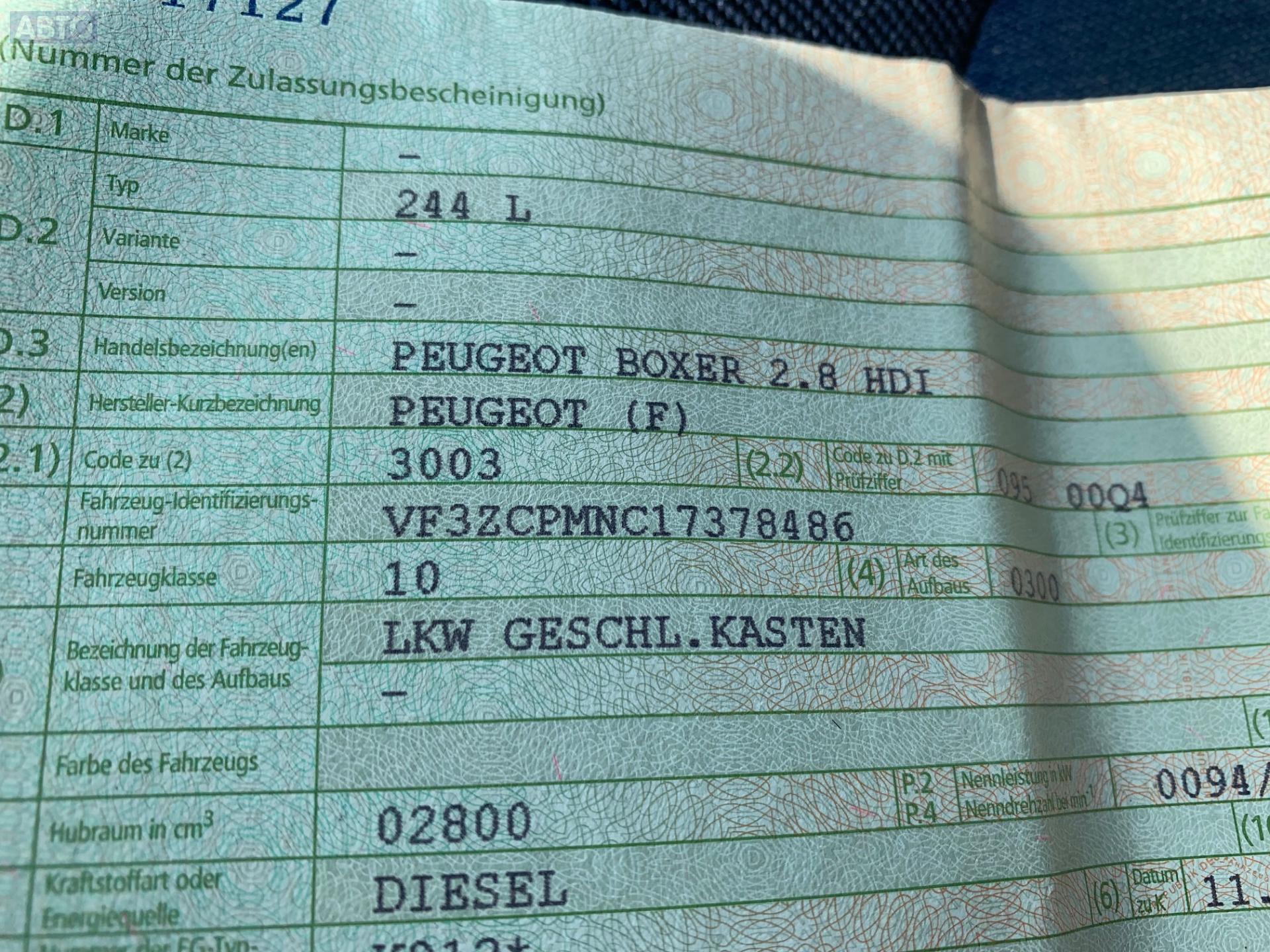 | Марка / Модель / Год: | Peugeot Boxer (2002-2006) 2004 |
