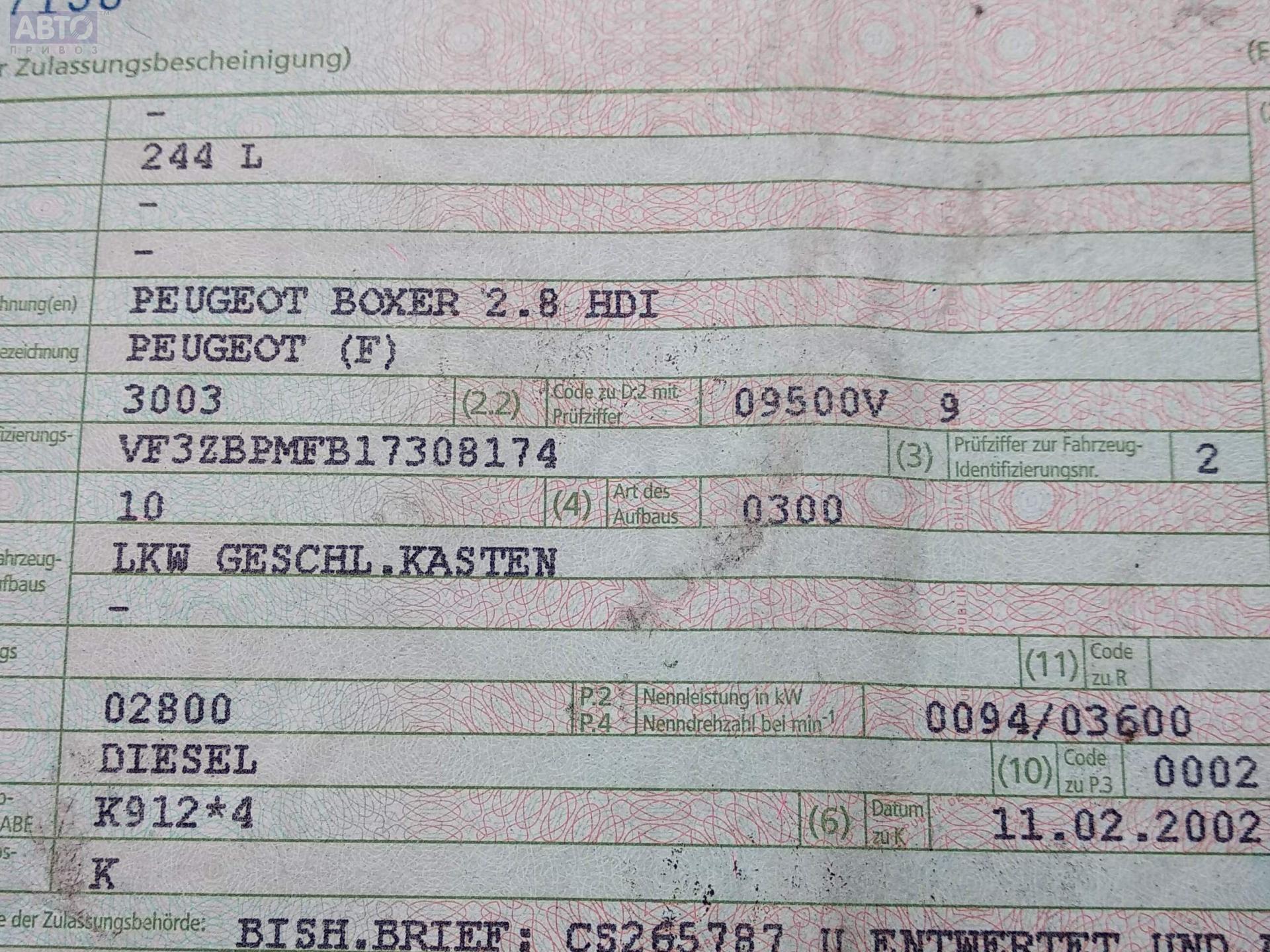 | Марка / Модель / Год: | Peugeot Boxer (2002-2006) 2003 |
