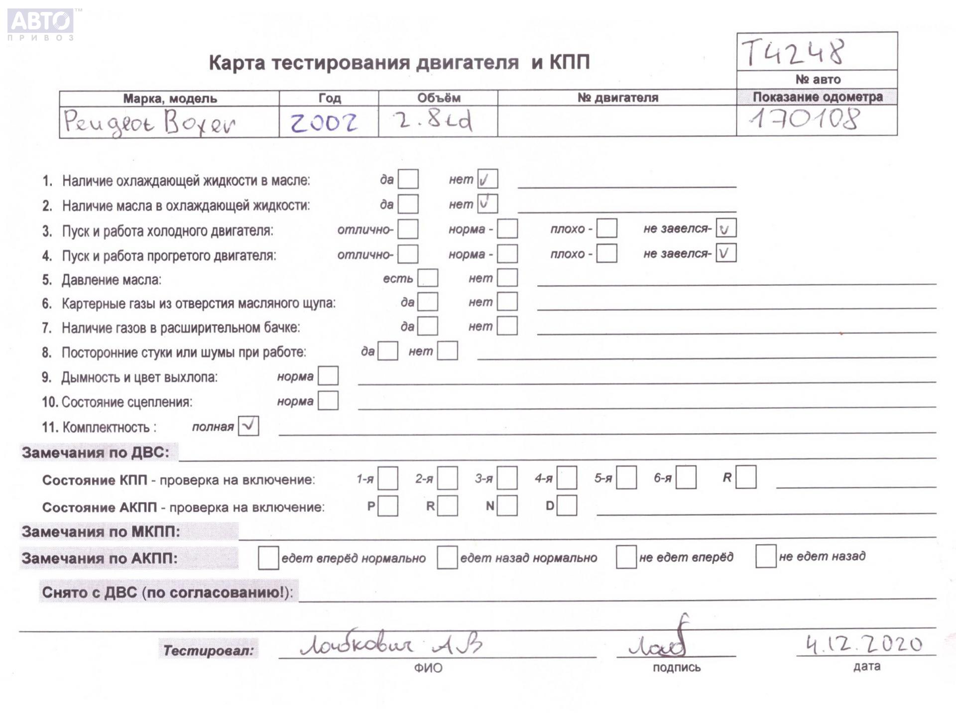 | Марка / Модель / Год: | Peugeot Boxer (2002-2006) 2002 |