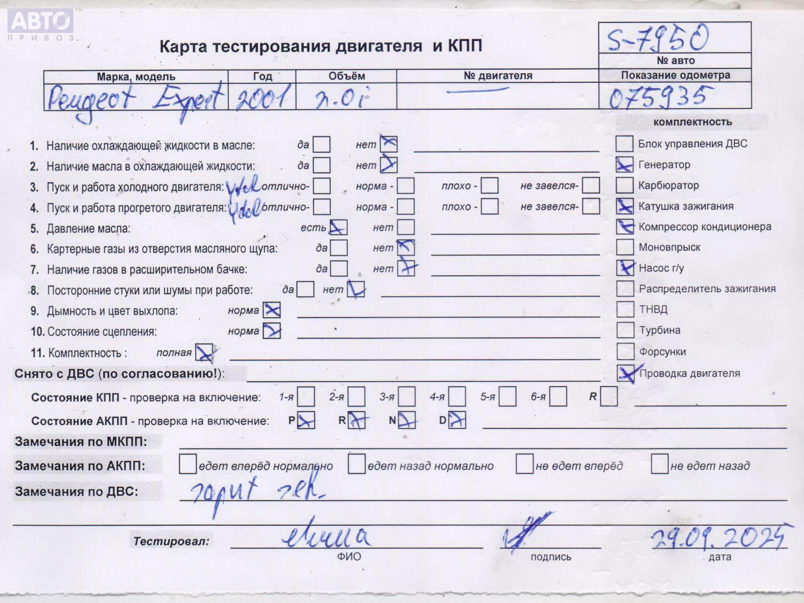 | Марка / Модель / Год: | Peugeot Expert (1994-2006) 2001 |