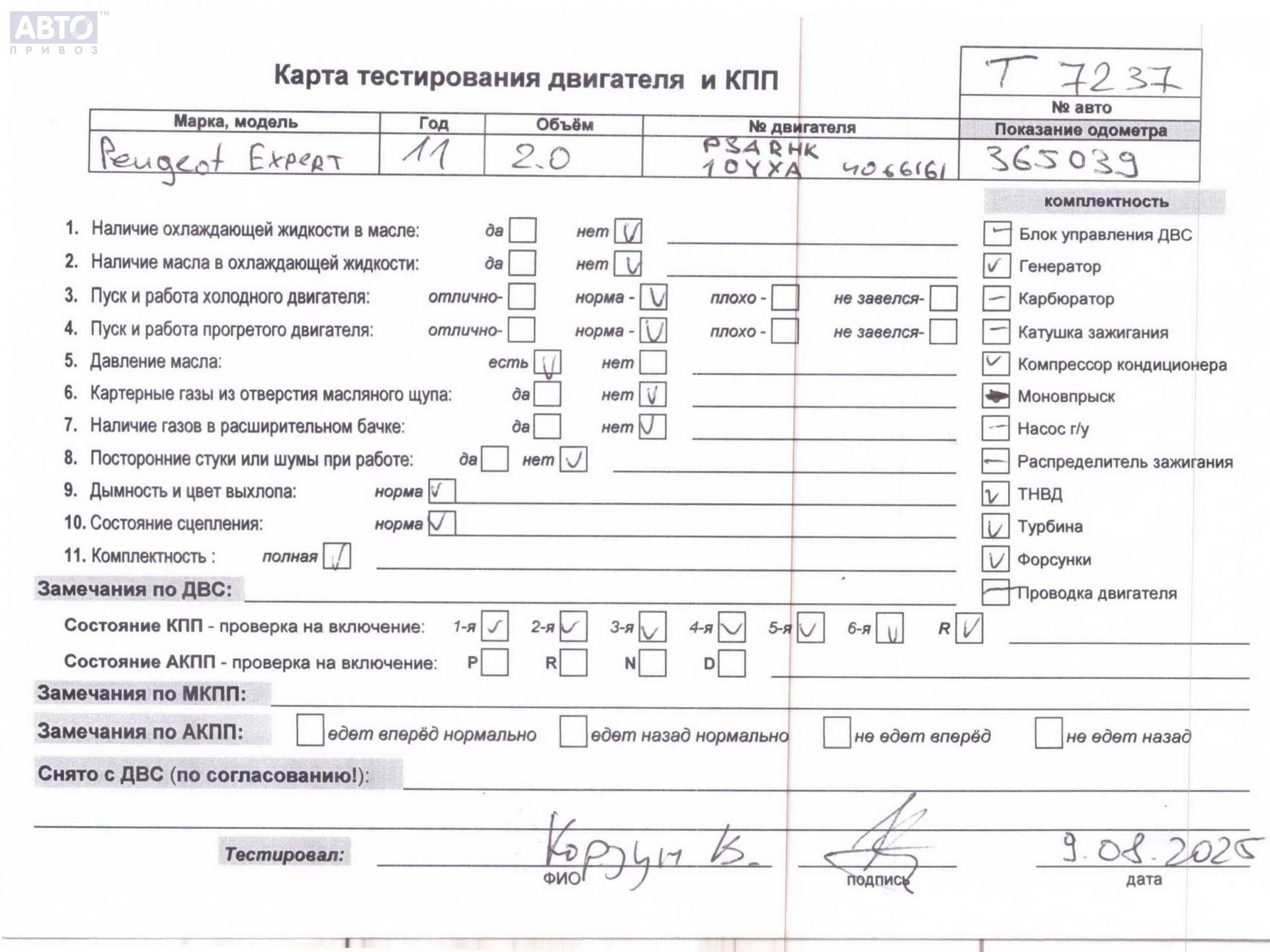 | Марка / Модель / Год: | Peugeot Expert (2007-2016) 2011 |