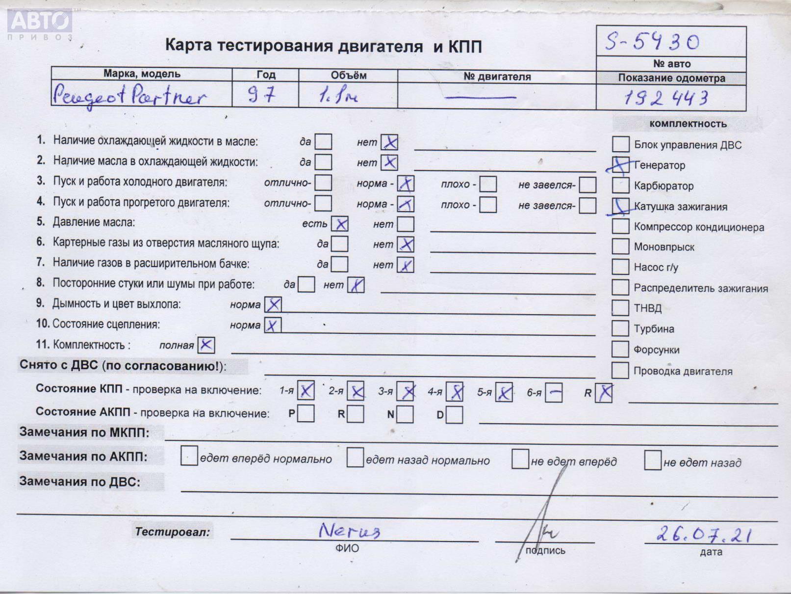 | Марка / Модель / Год: | Peugeot Partner (1996-2002) 1997 |