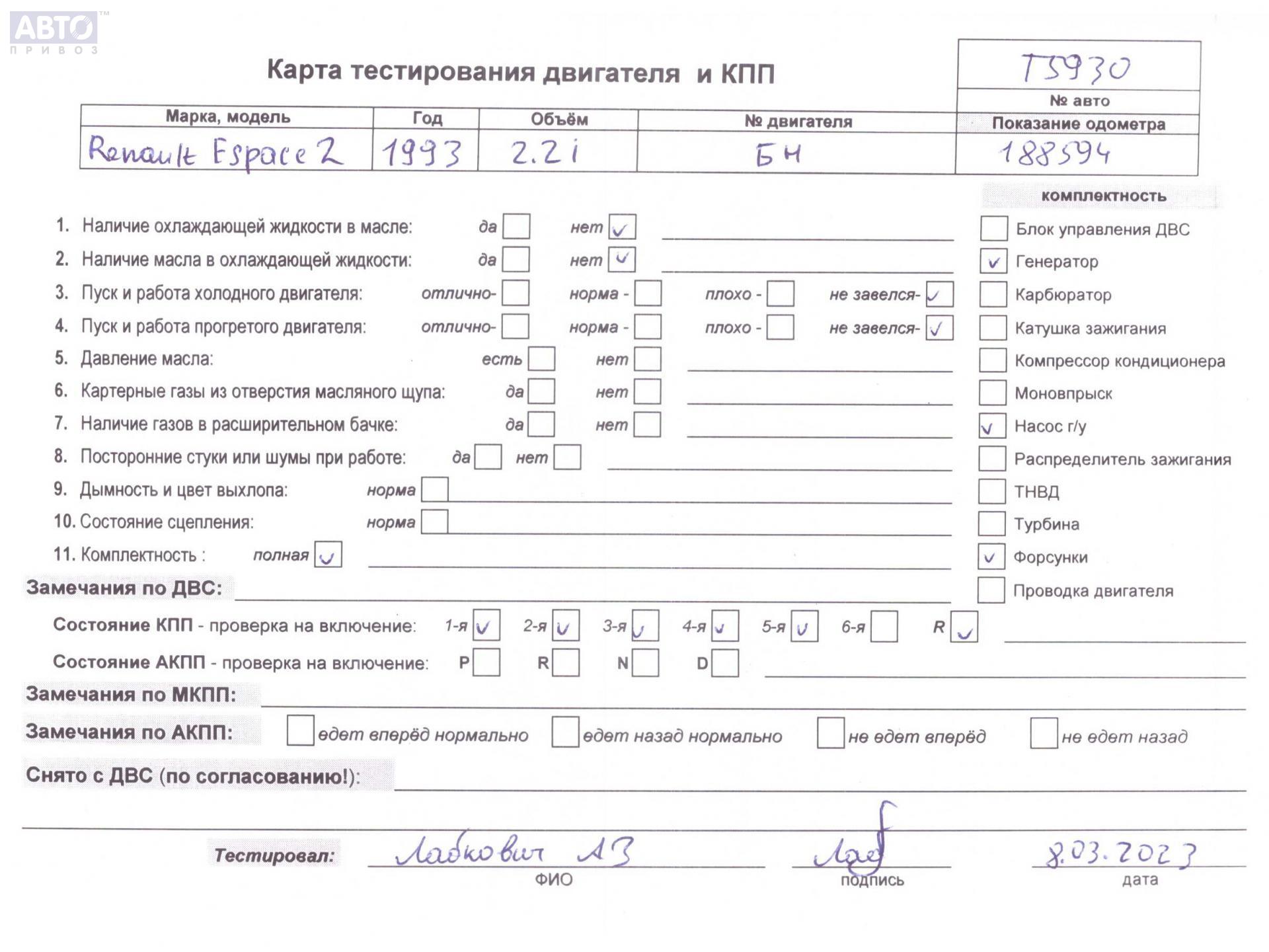 | Марка / Модель / Год: | Renault Espace II (1991-1996) 1993 |