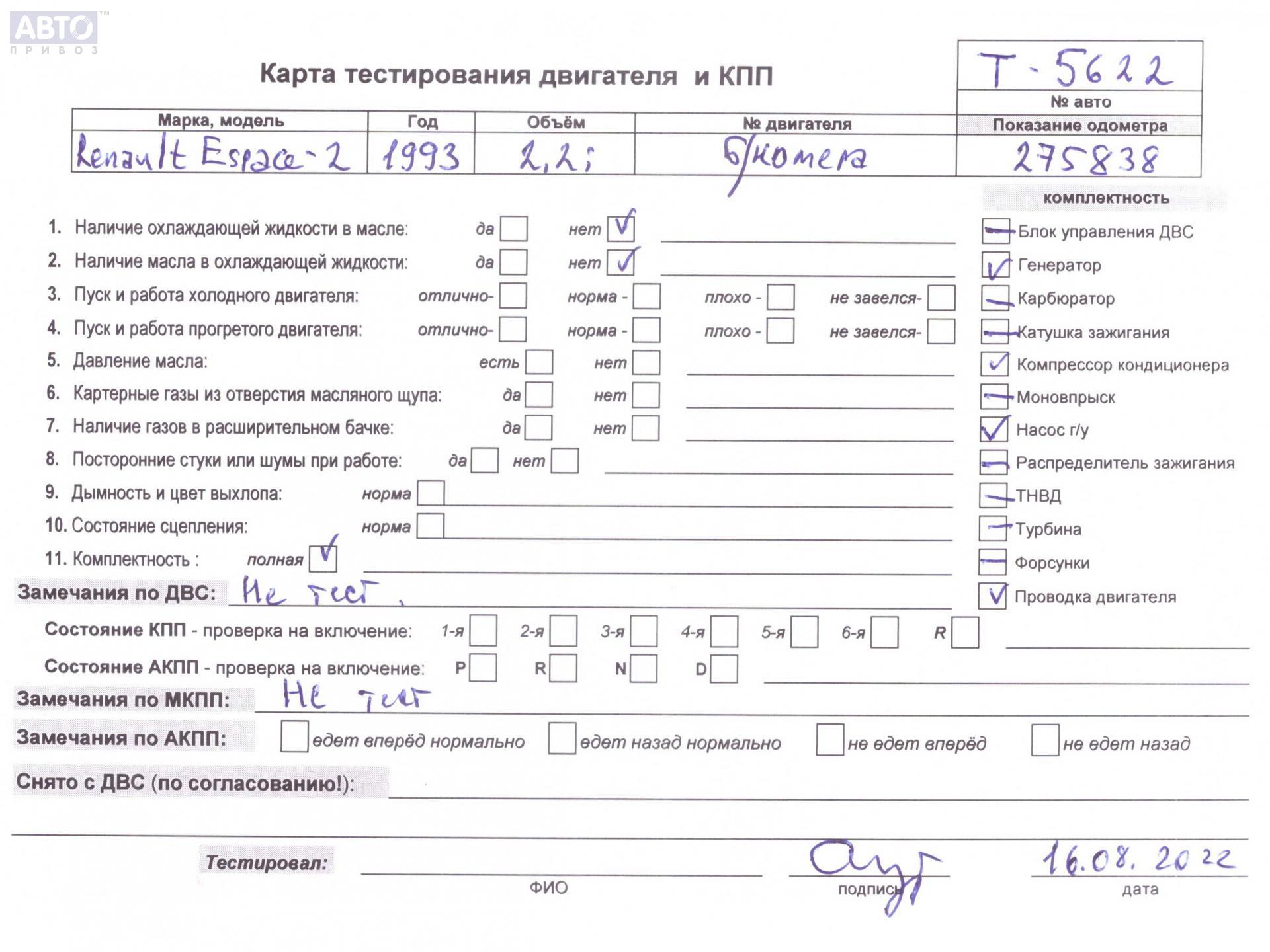| Марка / Модель / Год: | Renault Espace II (1991-1996) 1993 |