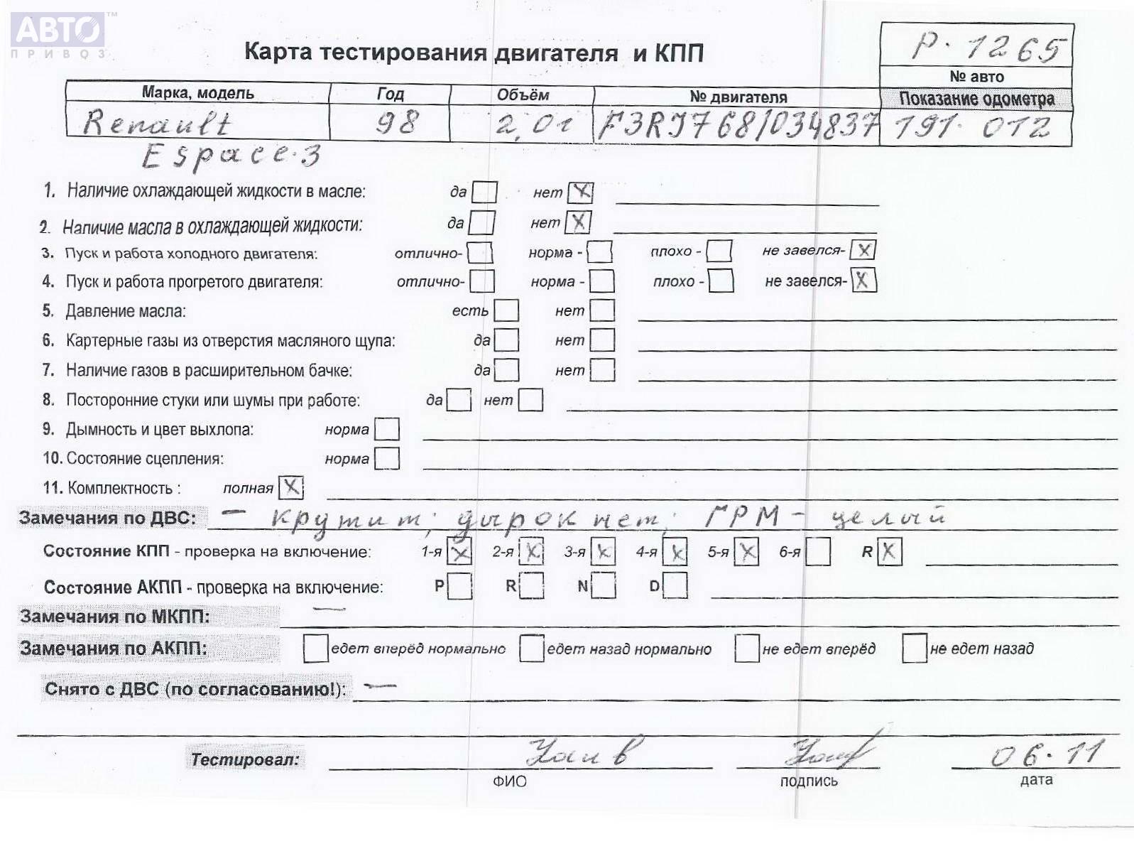 | Марка / Модель / Год: | Renault Espace III (1996-2002) 1998 |