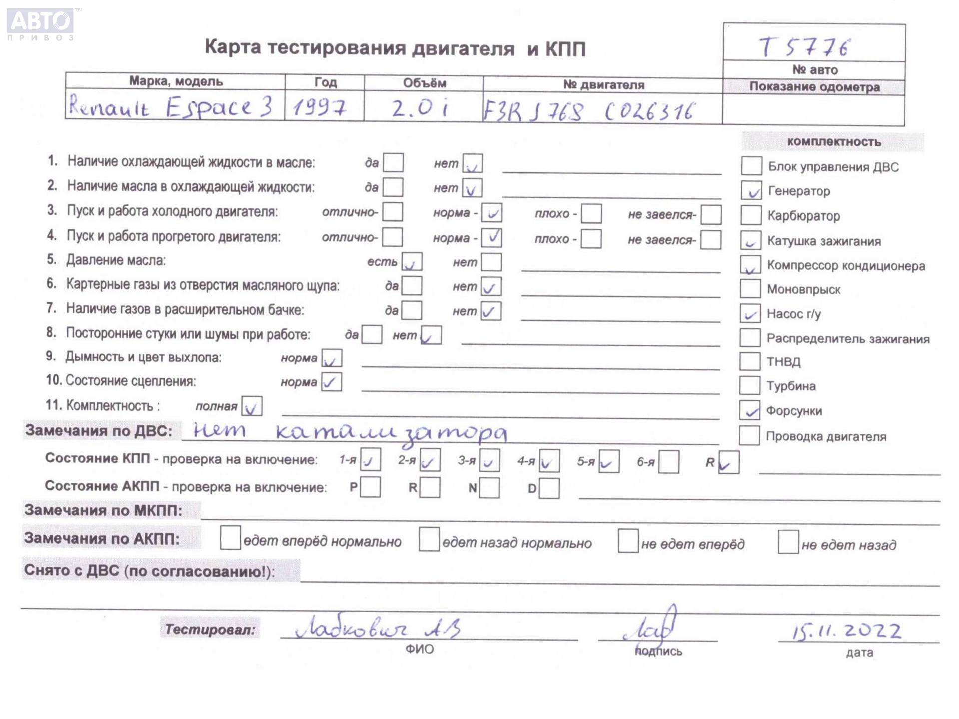 | Марка / Модель / Год: | Renault Espace III (1996-2002) 1997 |