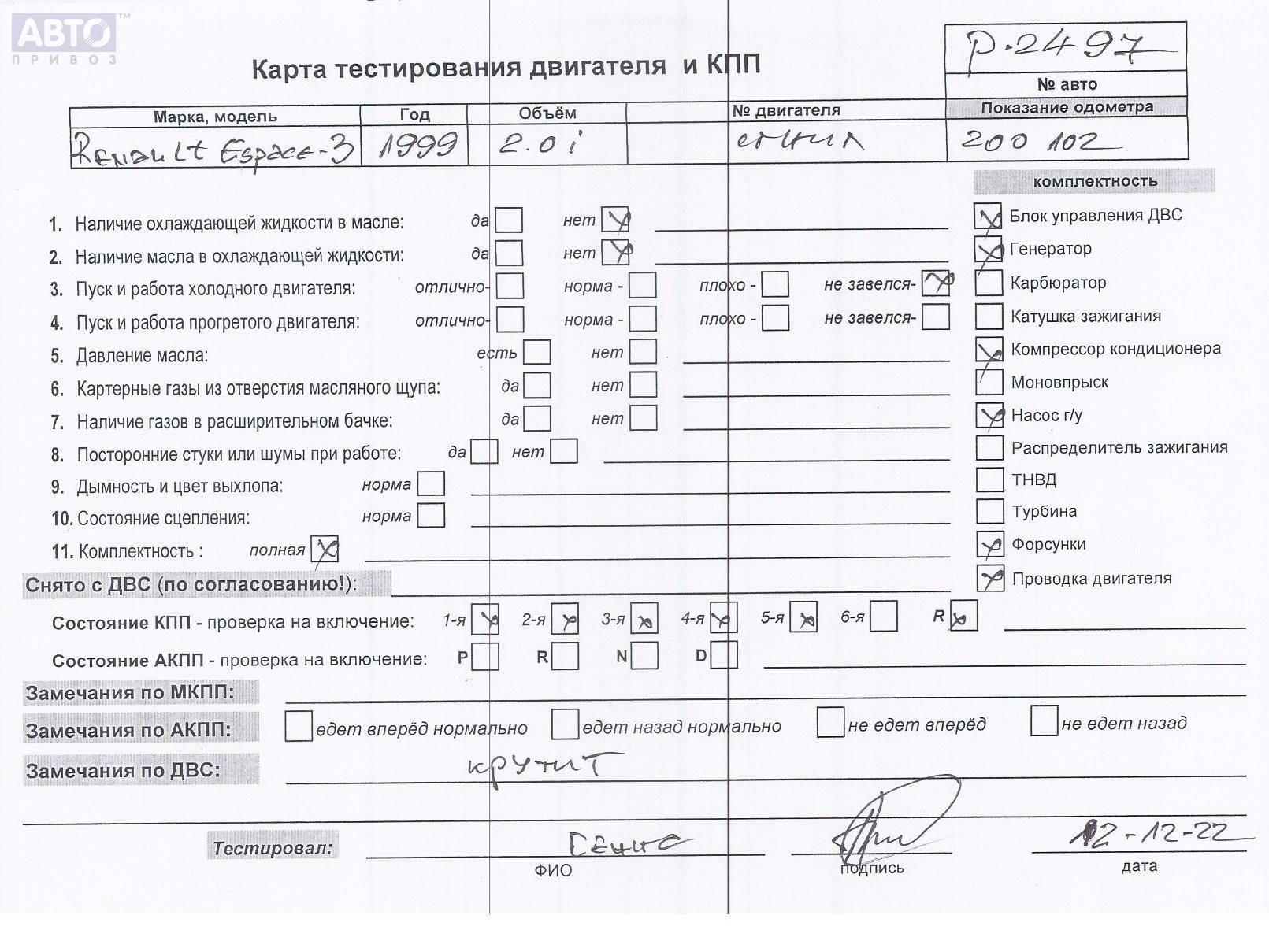 | Марка / Модель / Год: | Renault Espace III (1996-2002) 1999 |