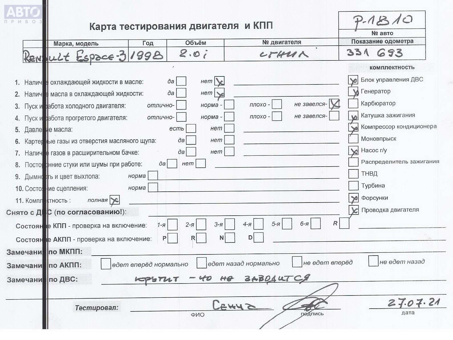 | Марка / Модель / Год: | Renault Espace III (1996-2002) 1998 |
