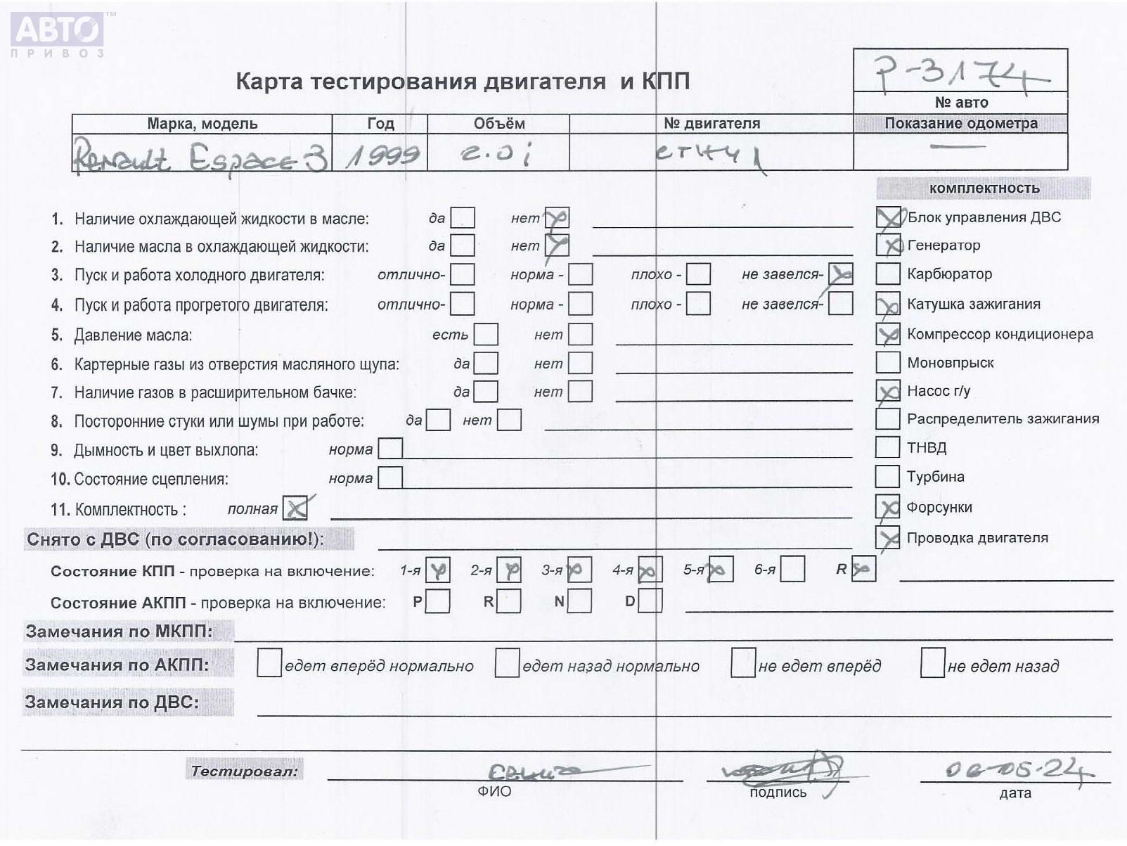 | Марка / Модель / Год: | Renault Espace III (1996-2002) 1999 |