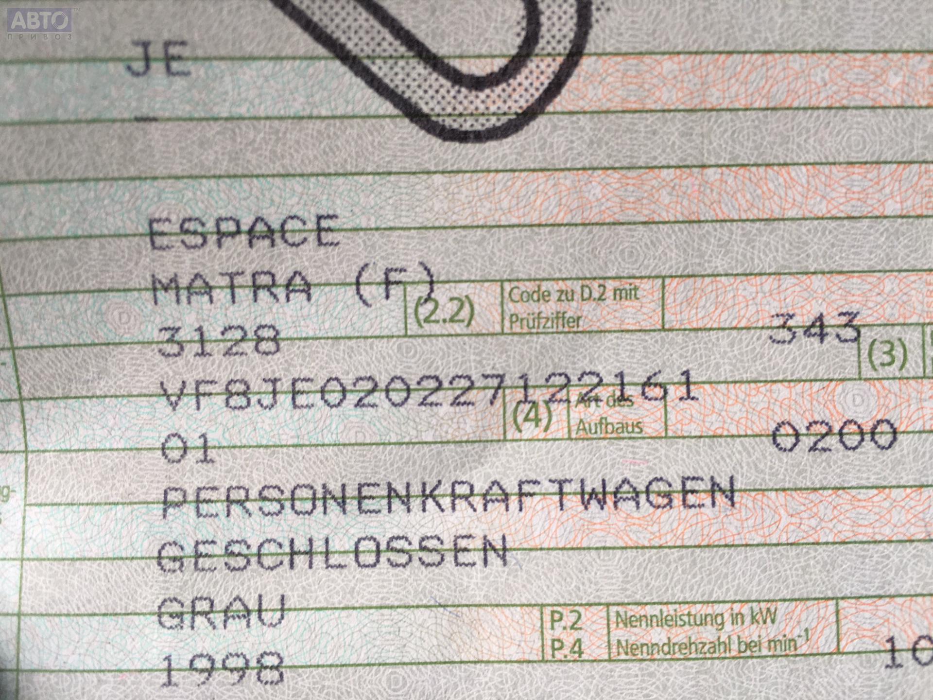 | Марка / Модель / Год: | Renault Espace III (1996-2002) 2002 |