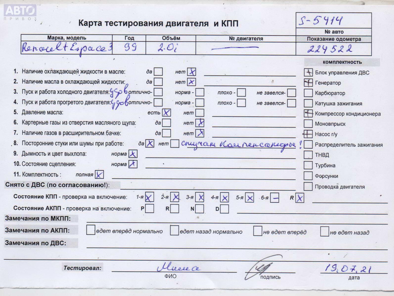 | Марка / Модель / Год: | Renault Espace III (1996-2002) 1999 |