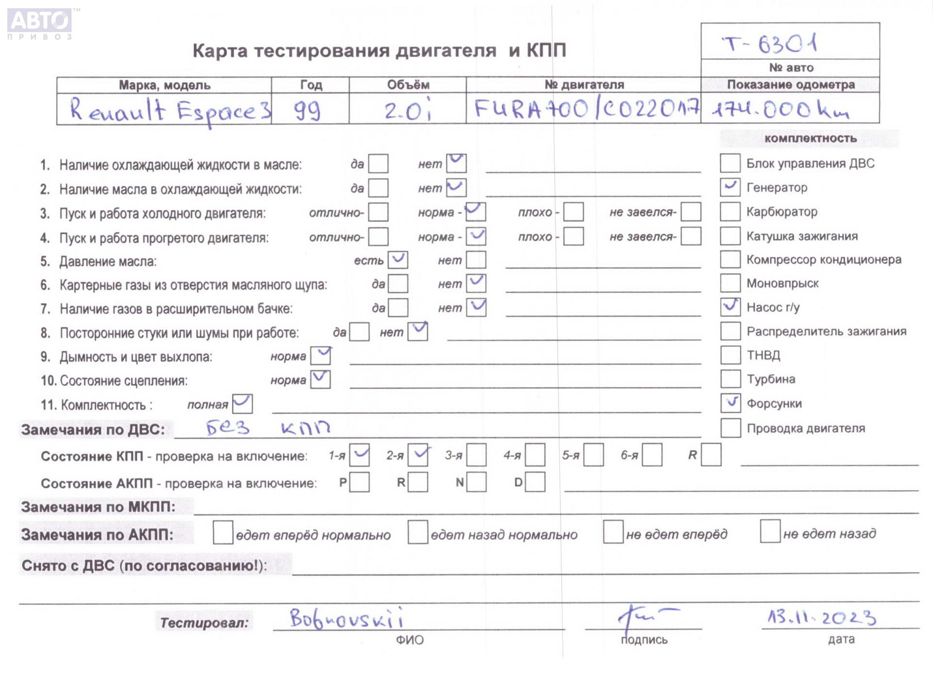 | Автомобиль / VIN: | T6301 VF8JE0N0522170235 |
