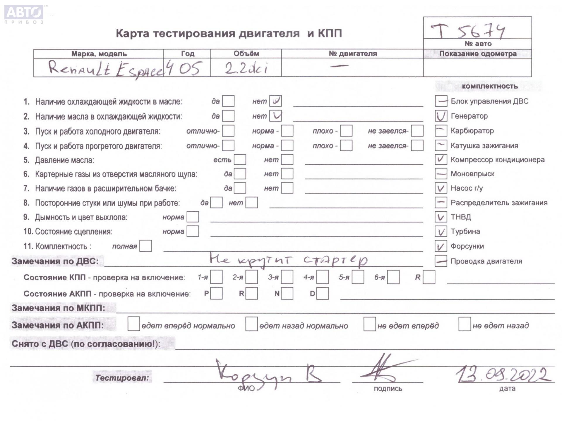 | Марка / Модель / Год: | Renault Espace IV (2002-2014) 2005 |