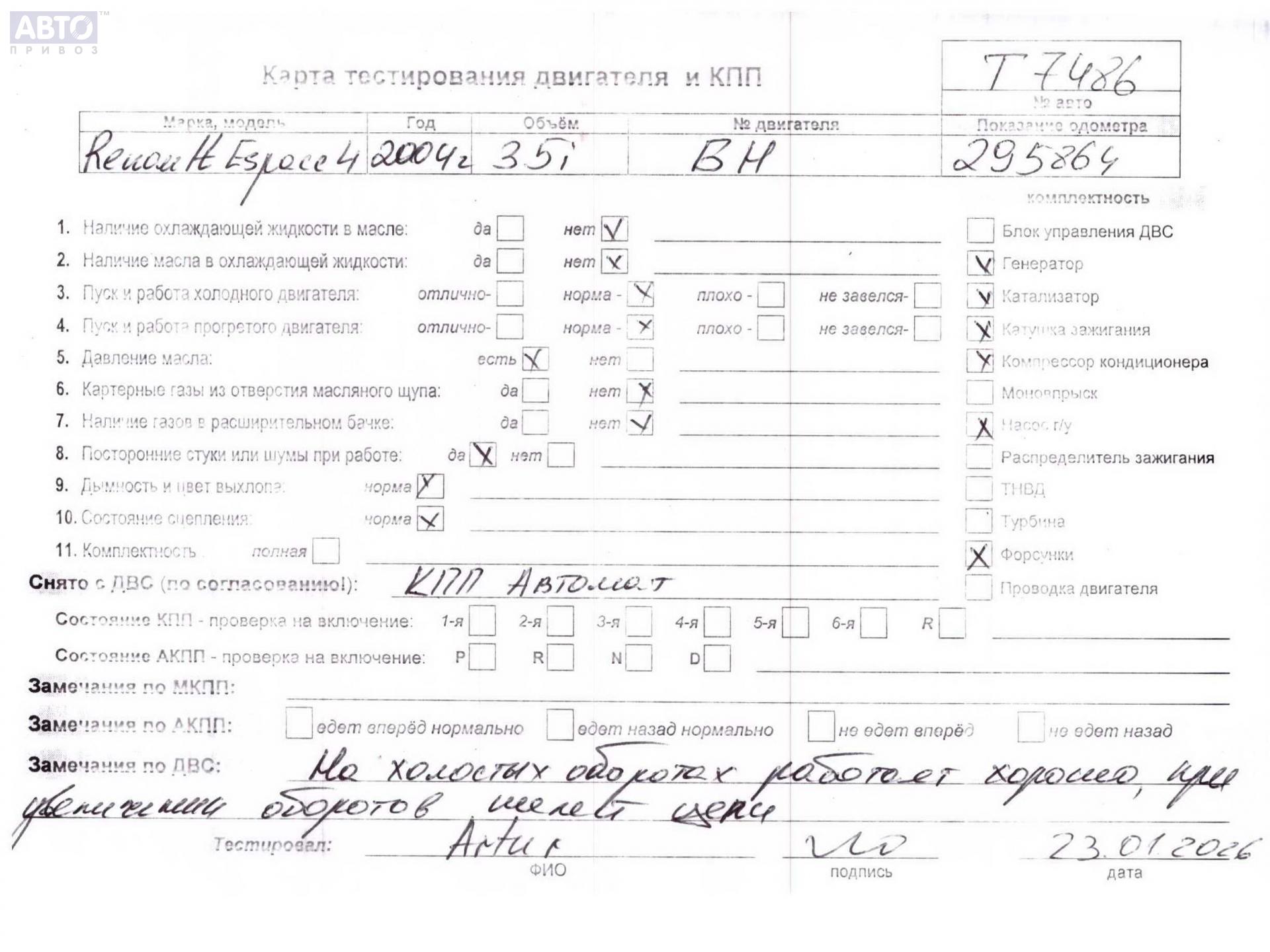 | Марка / Модель / Год: | Renault Espace IV (2002-2014) 2004 |