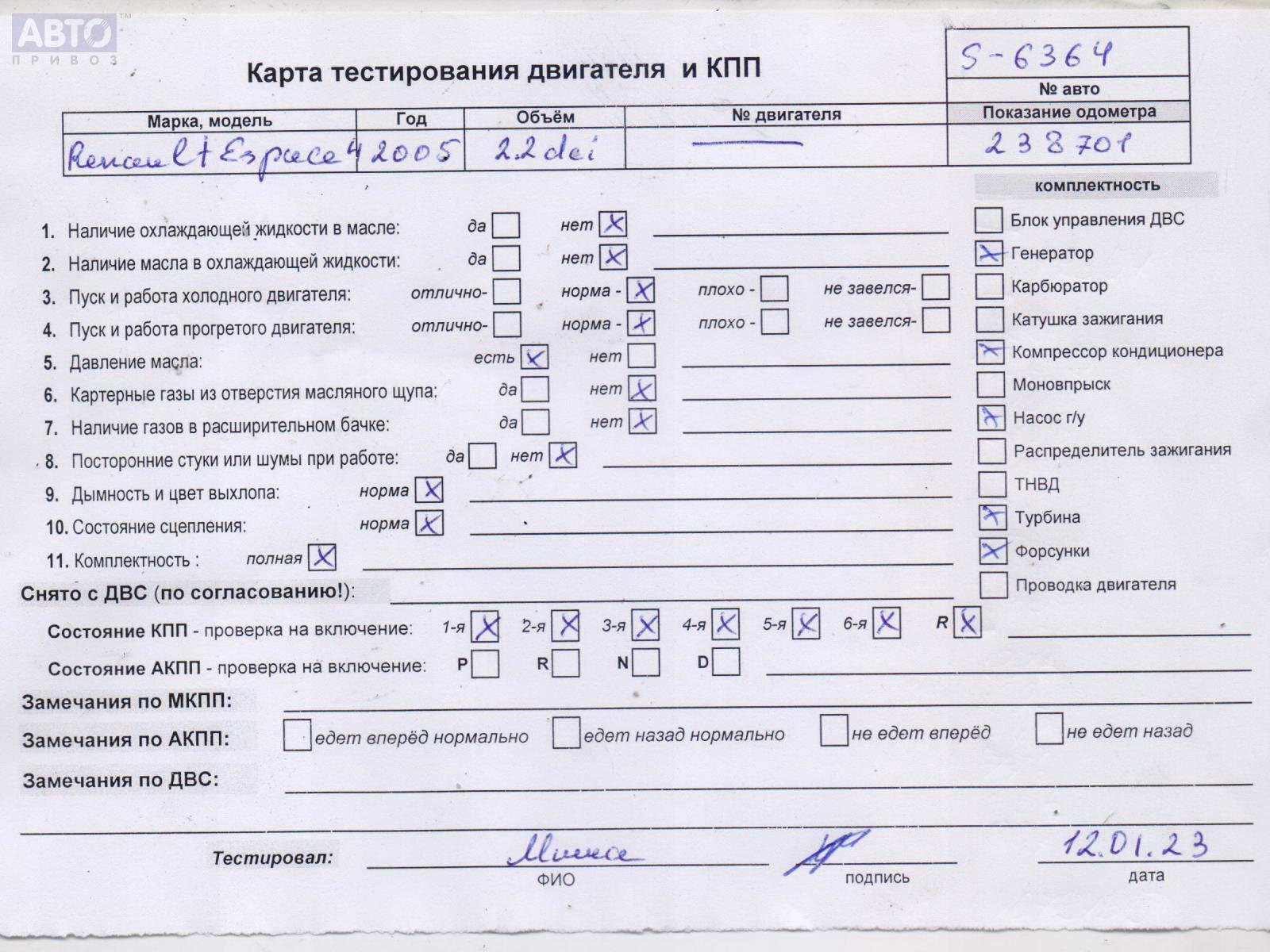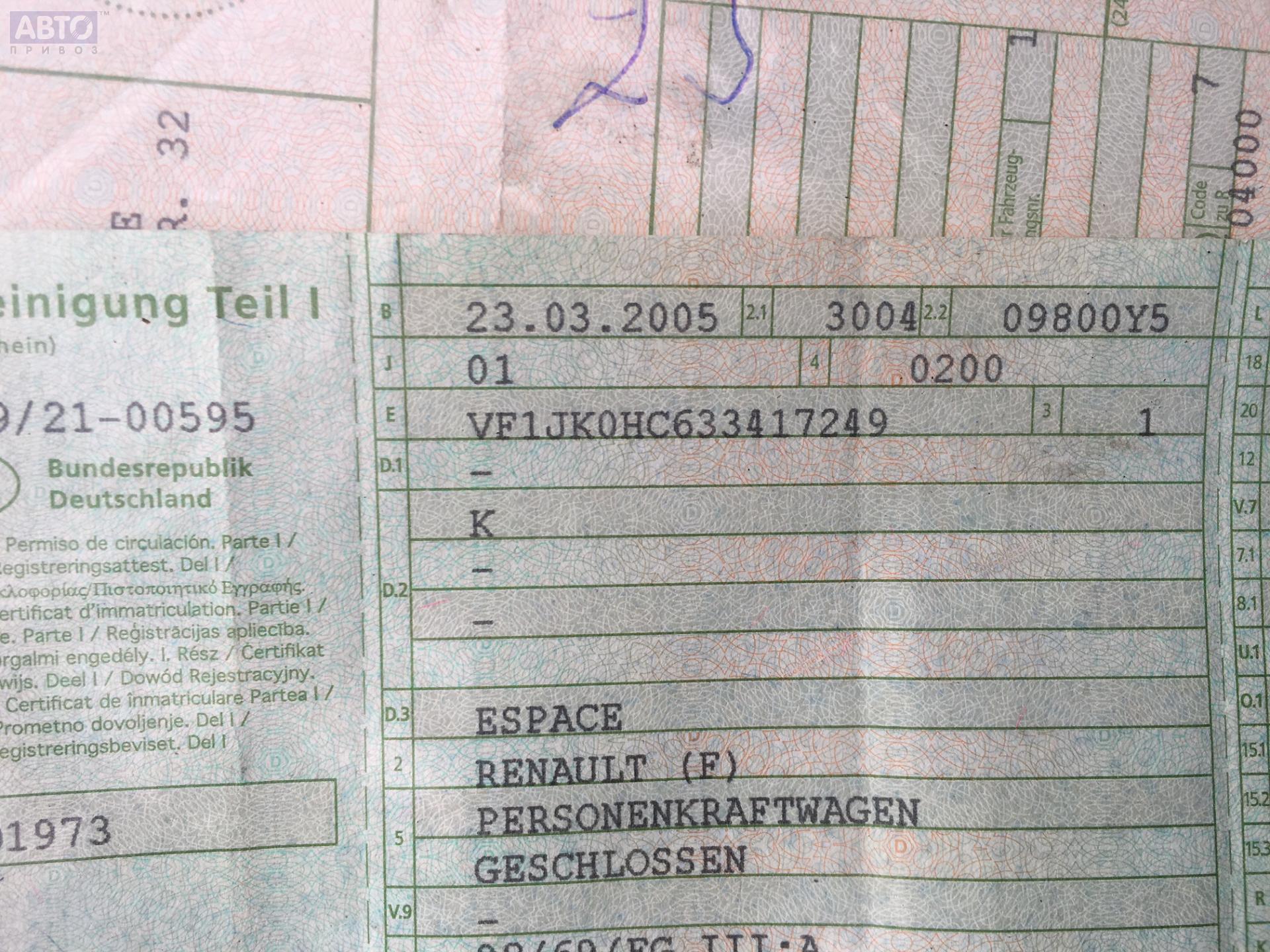 | Марка / Модель / Год: | Renault Espace IV (2002-2014) 2005 |