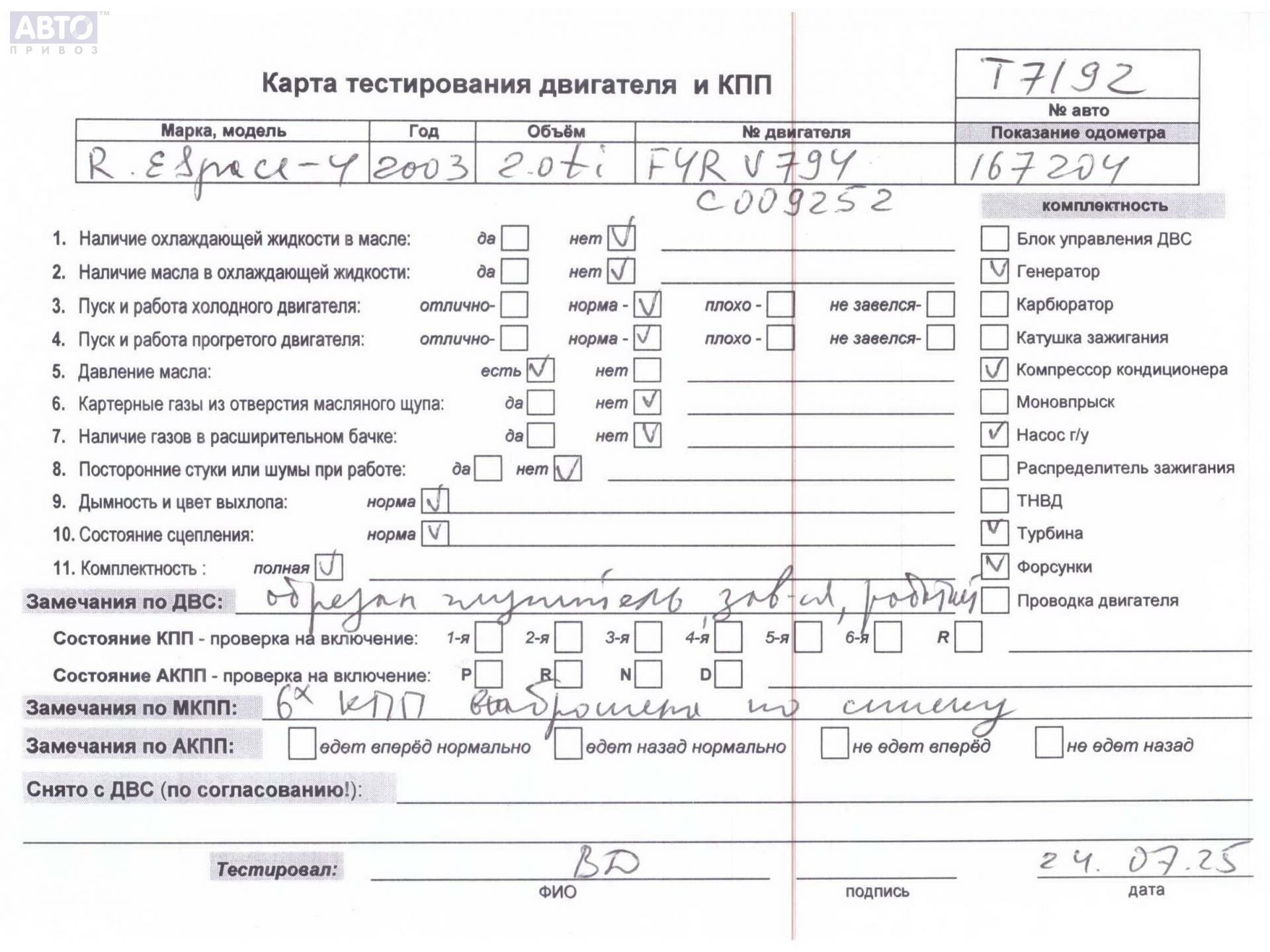 | Марка / Модель / Год: | Renault Espace IV (2002-2014) 2003 |