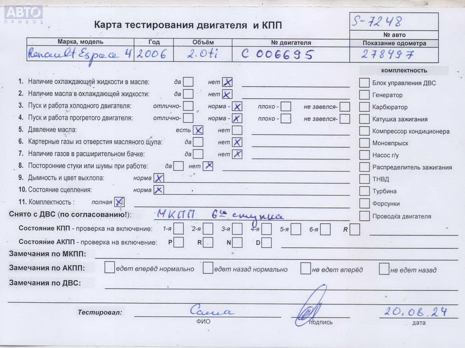| Автомобиль / VIN: | S7248 VF1JK0AA637034995 |