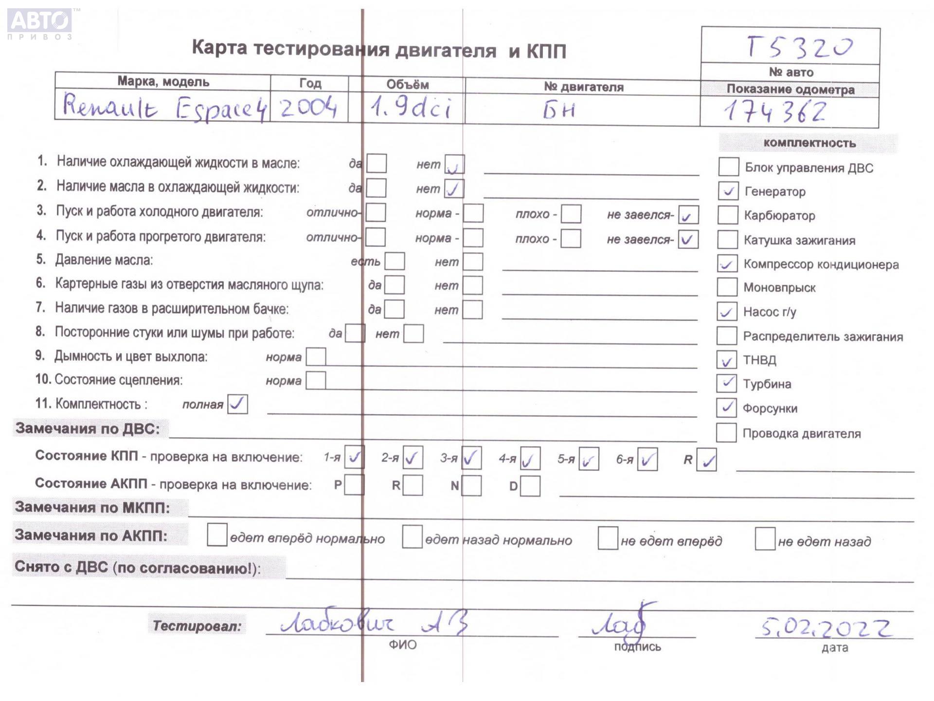 | Автомобиль / VIN: | T5320 VF1JK0GA631607144 |