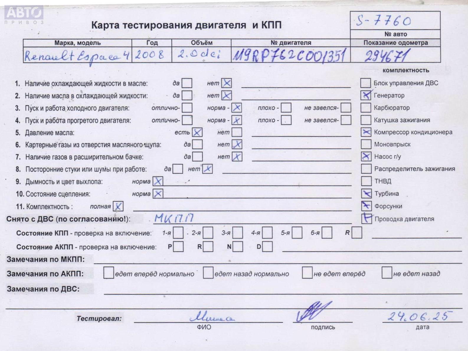 | Марка / Модель / Год: | Renault Espace IV (2002-2014) 2008 |