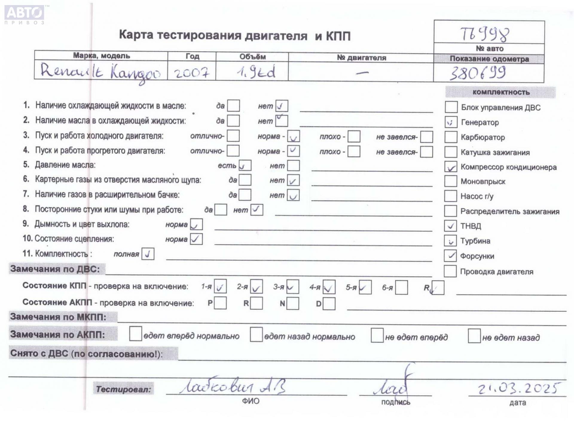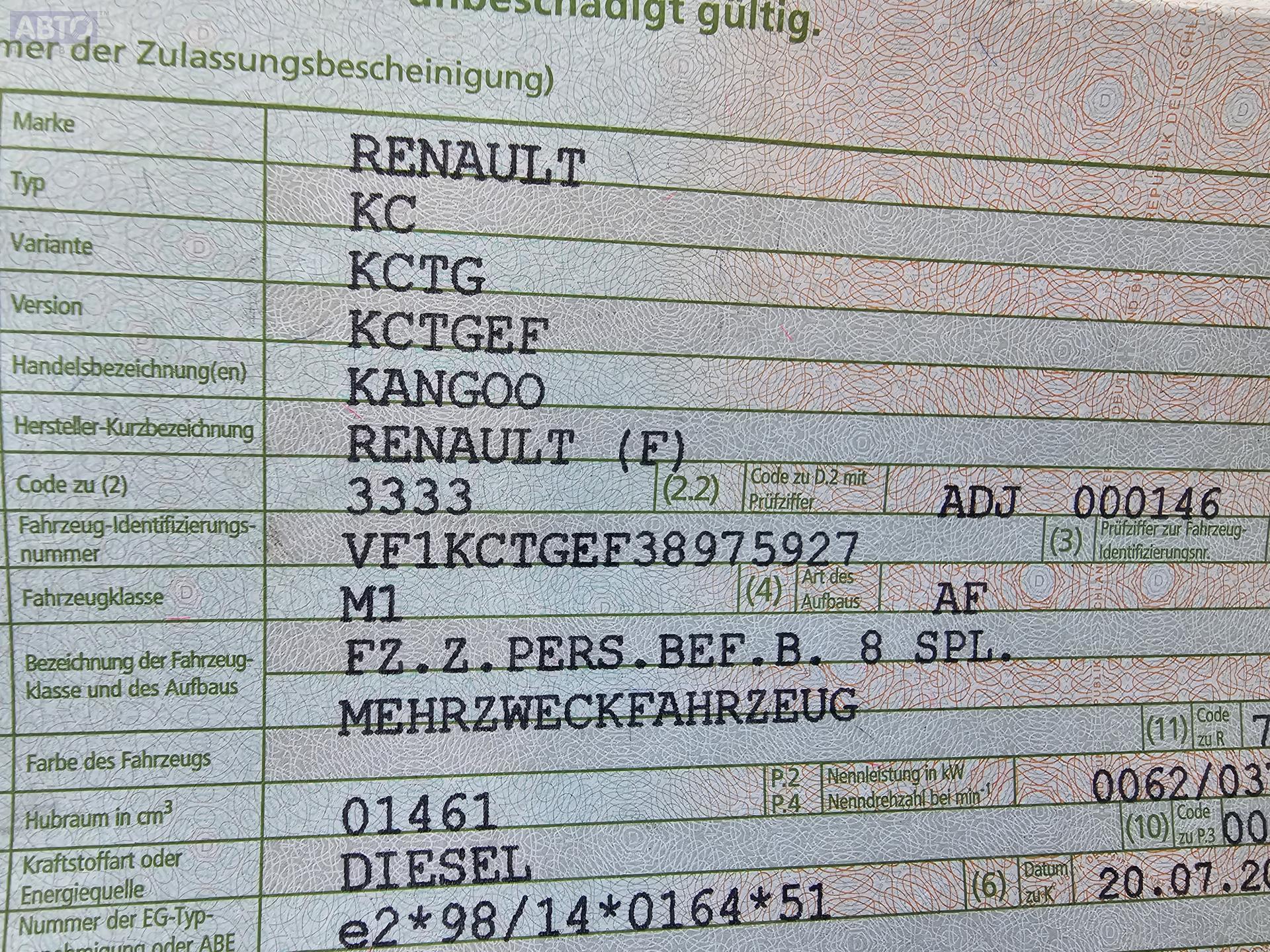| Марка / Модель / Год: | Renault Kangoo I (1998-2008) 2007 |
