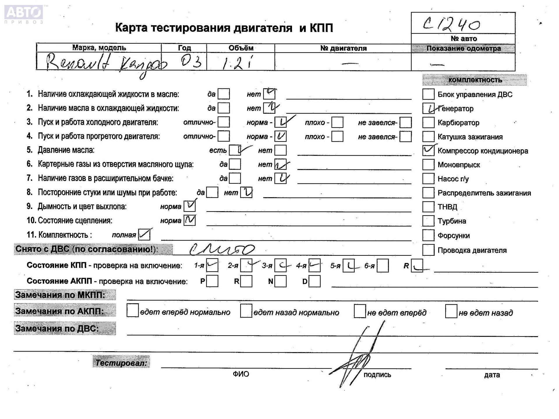 | Марка / Модель / Год: | Renault Kangoo I (1998-2008) 2004 |