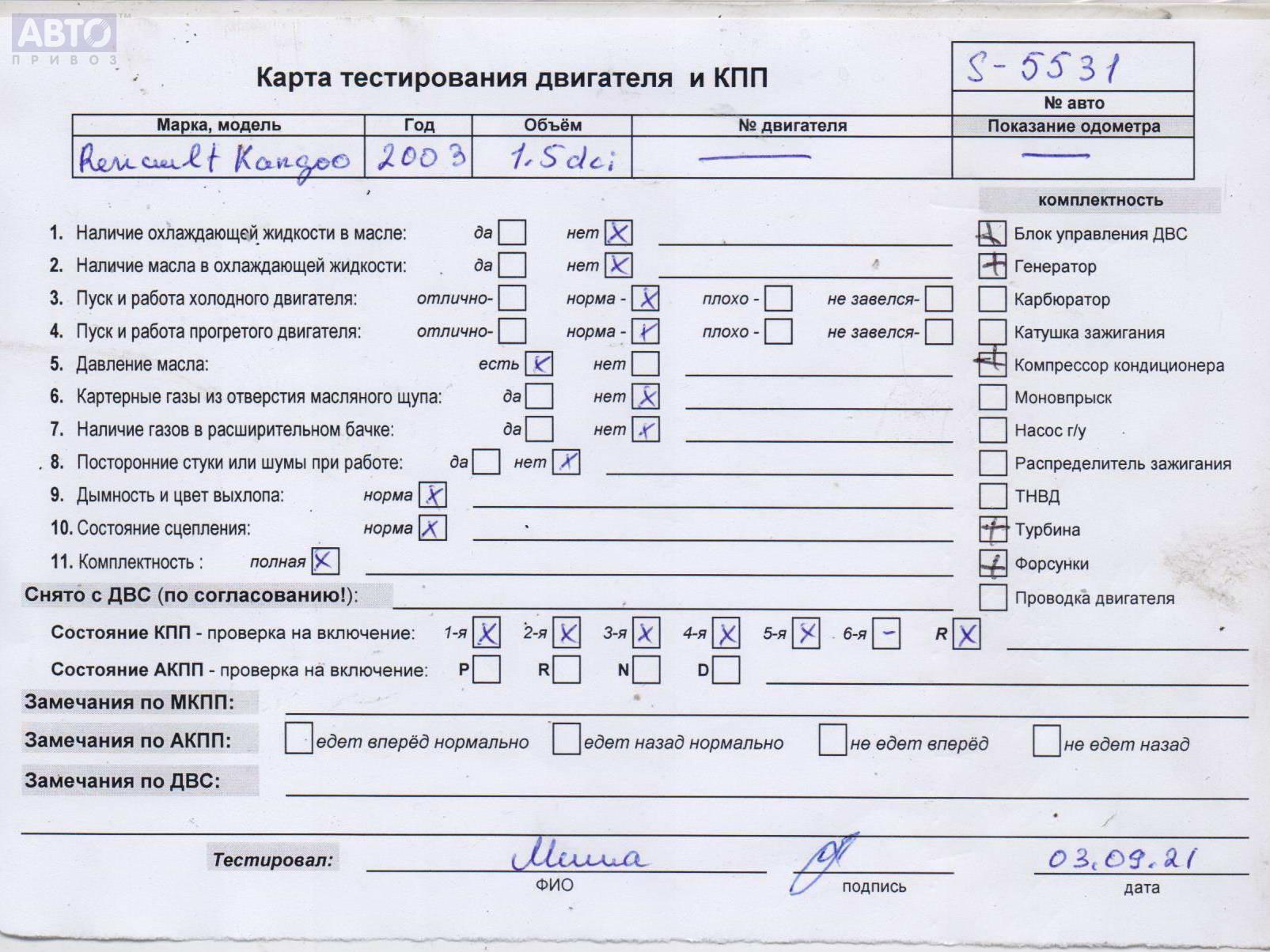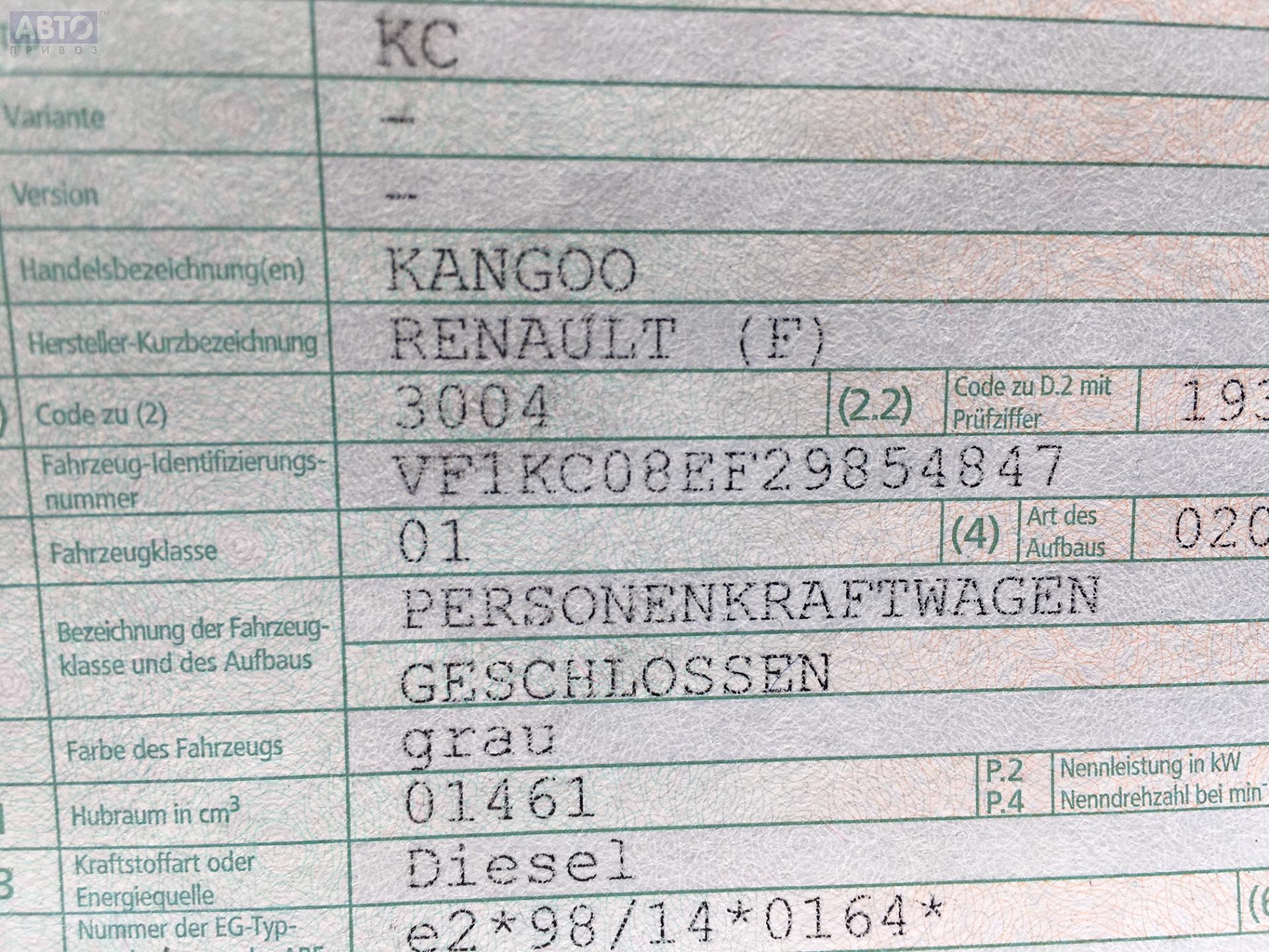 | Марка / Модель / Год: | Renault Kangoo I (1998-2008) 2003 |