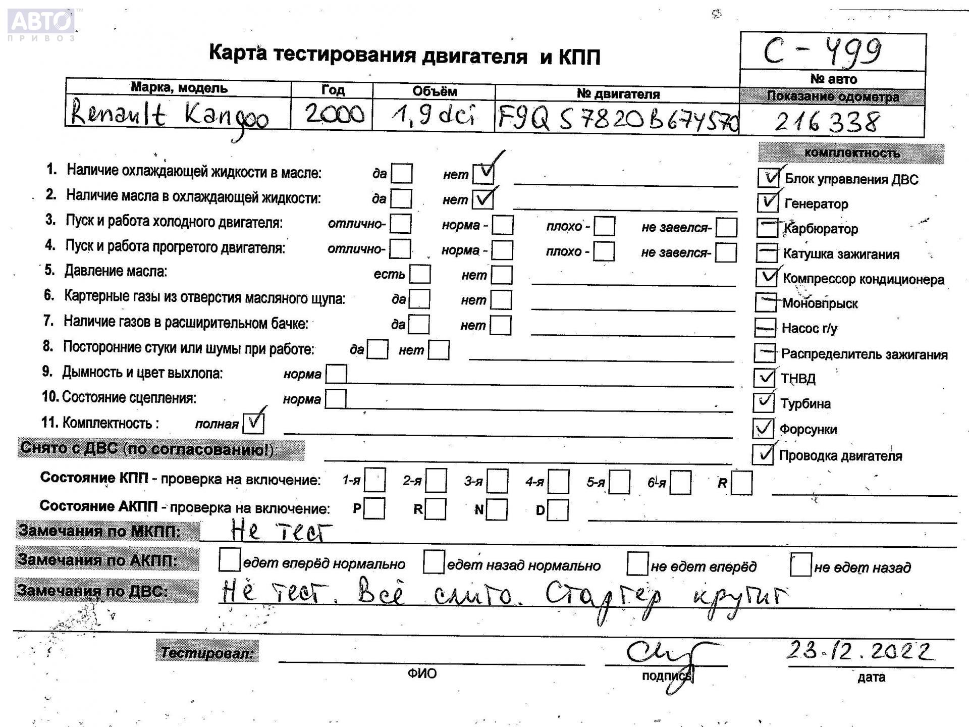 | Автомобиль / VIN: | C0499 VF1KC0VAF23987765 |