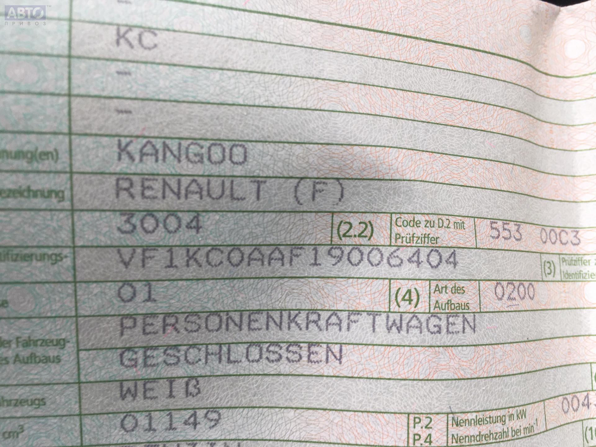 | Марка / Модель / Год: | Renault Kangoo I (1998-2008) 1998 |