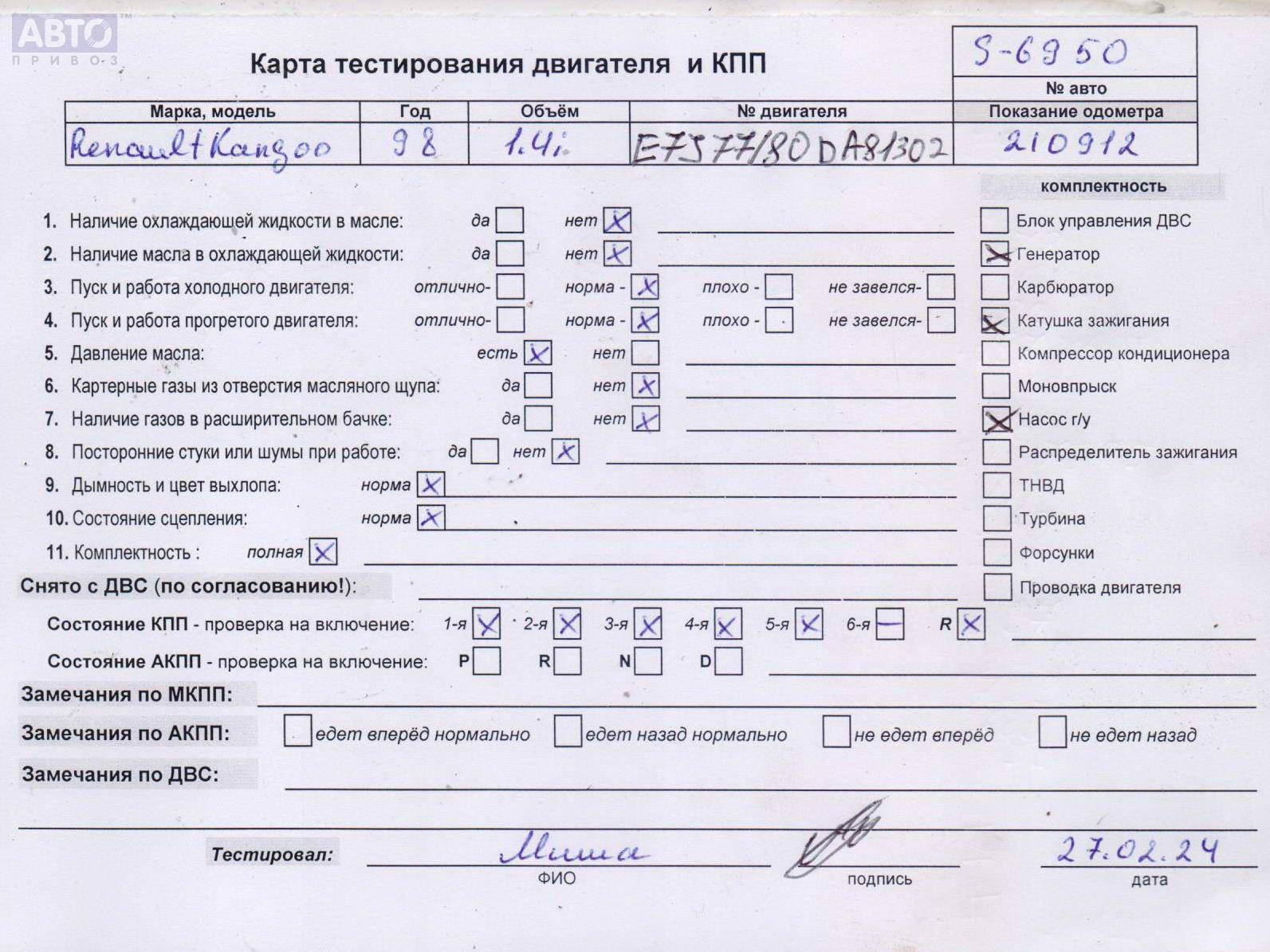 | Марка / Модель / Год: | Renault Kangoo I (1998-2008) 1998 |
